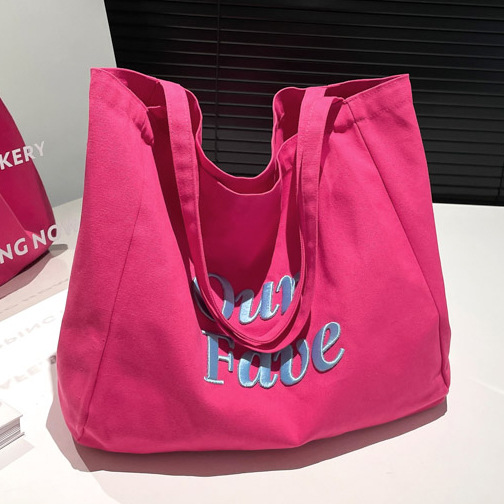 韓国スタイルカジュアルレイジースタイル大容量脇の下バッグ女性のための 2025 夏の新しいレター刺繍トートキャンバスバッグ