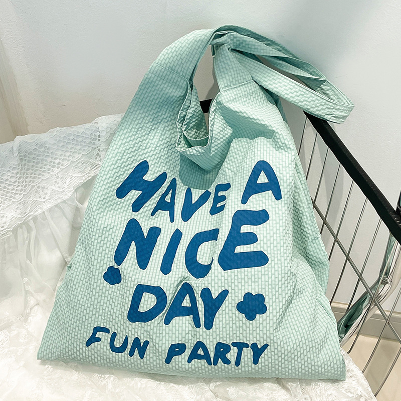 韓国版 2025 新しいレタープリントカジュアル大容量トートバッグ軽量旅行怠惰なスタイルのショルダーバッグ
