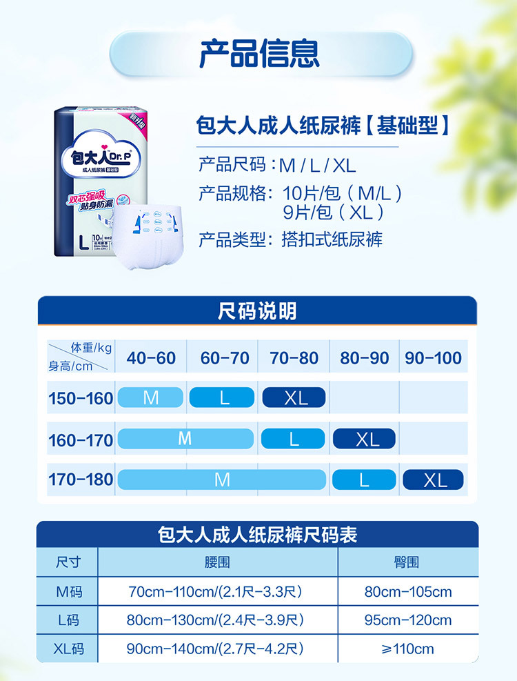 大人 (dr.P) 基礎型成人紙おむつ高齢者産婦尿不湿高齢者おむつ