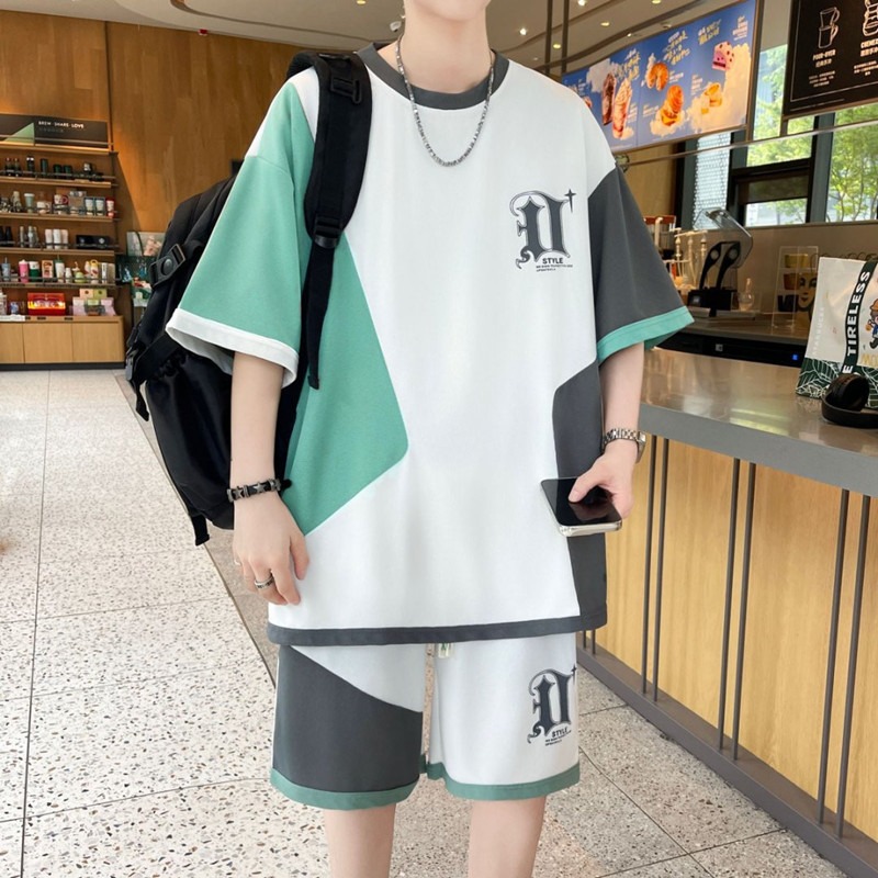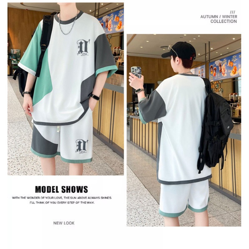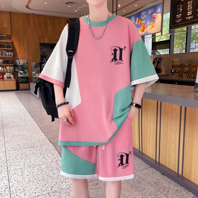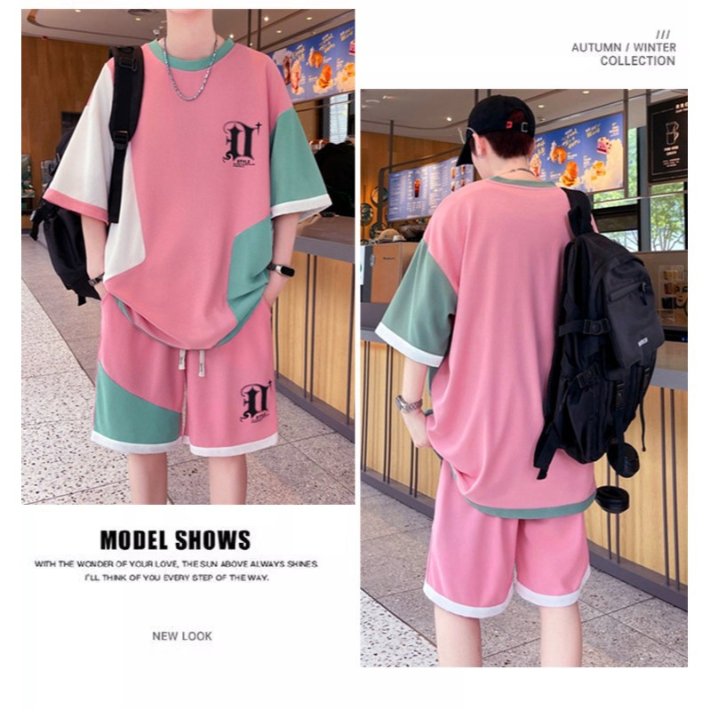スポット卸売り高品質夏スーツ男港風ゆるい半袖パンツ2点セットカジュアル男服夏スーツ