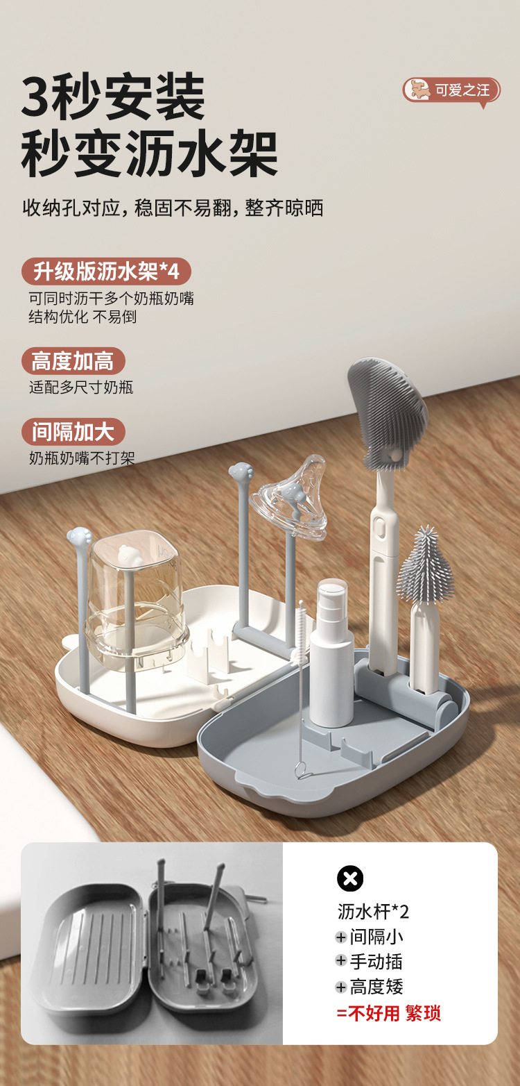 ポータブル哺乳瓶ブラシセット 新生児用多機能旅行用排水ラック付き両用ウォーターカップブラシ 哺乳瓶ブラシ
