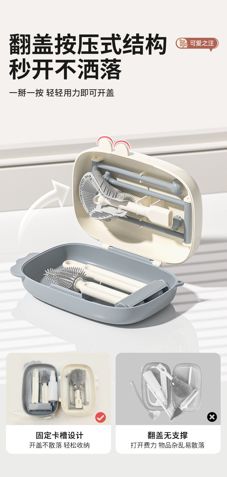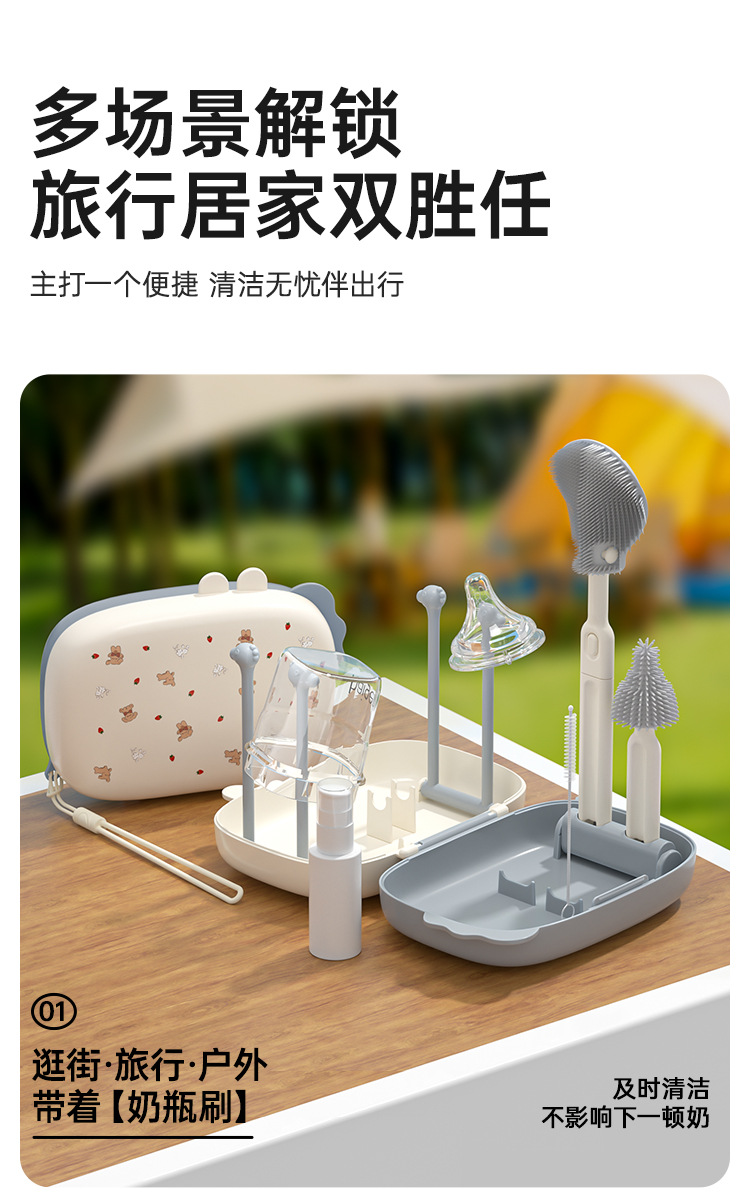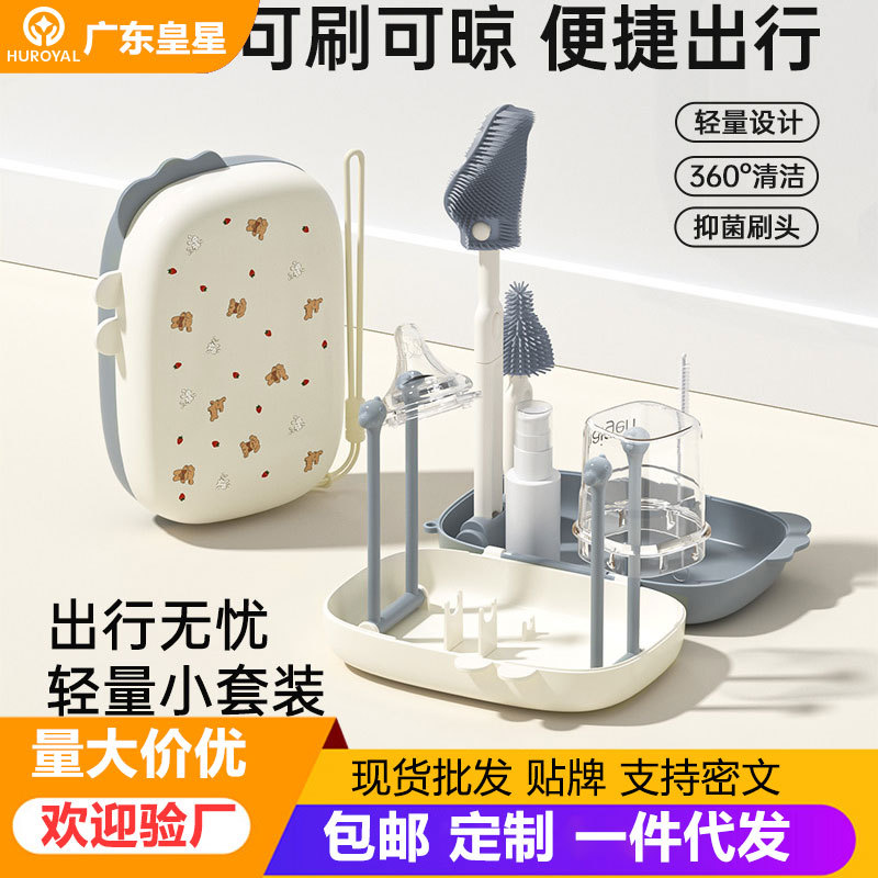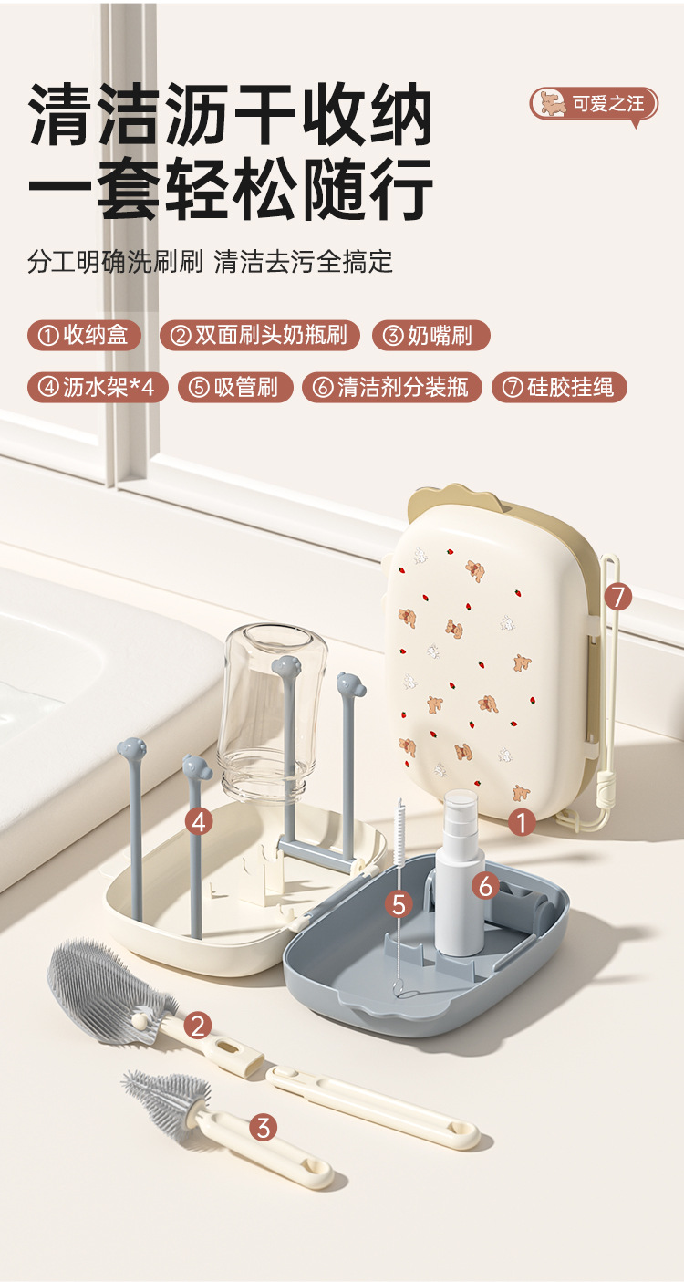 厂家直销新生婴儿便携奶瓶刷套装防霉抗菌清洁刷带收纳盒旅行外出