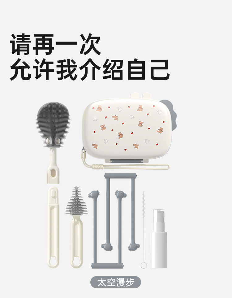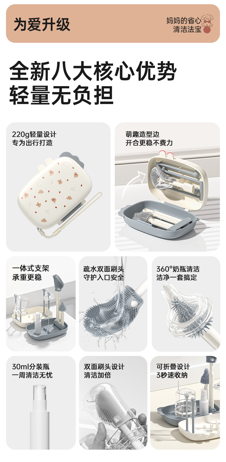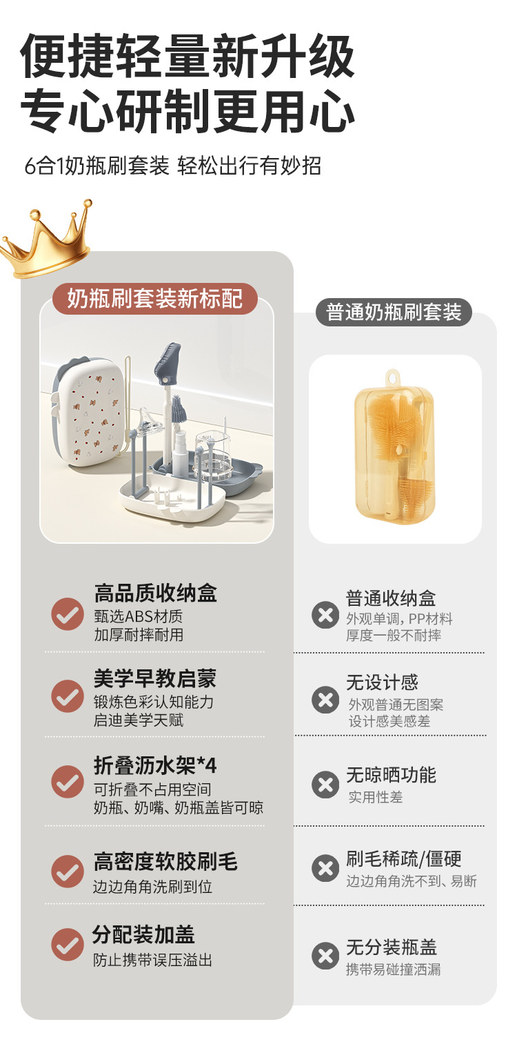 厂家直销新生婴儿便携奶瓶刷套装防霉抗菌清洁刷带收纳盒旅行外出