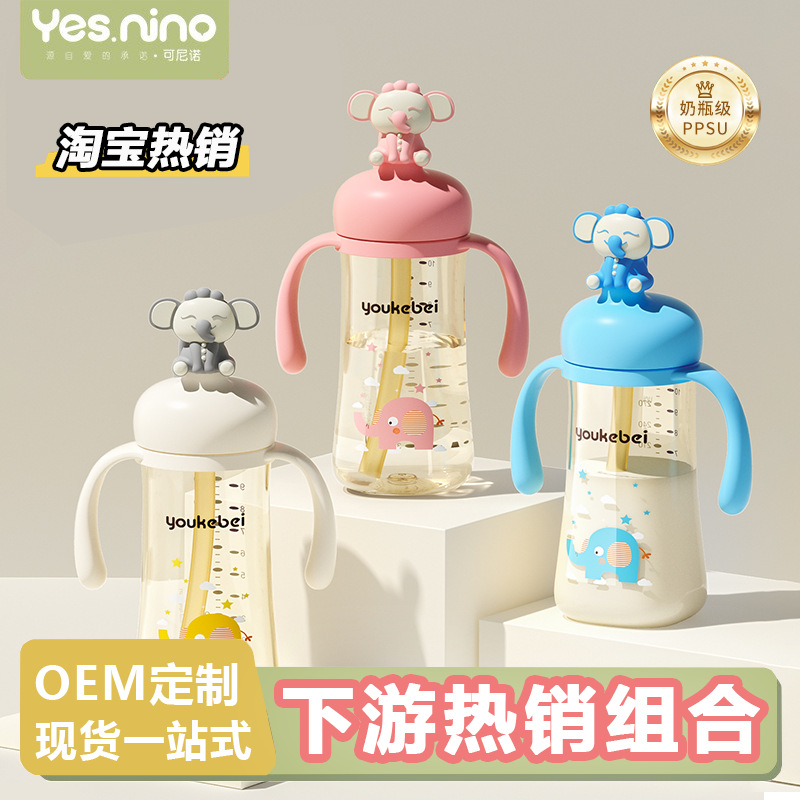哺乳瓶、PPSUウォーターカップ、ワイド口径、大きなベビードリンクカップ、ストロー、アヒルのくちばし学習カップ、スマートな抗疝痛カップ