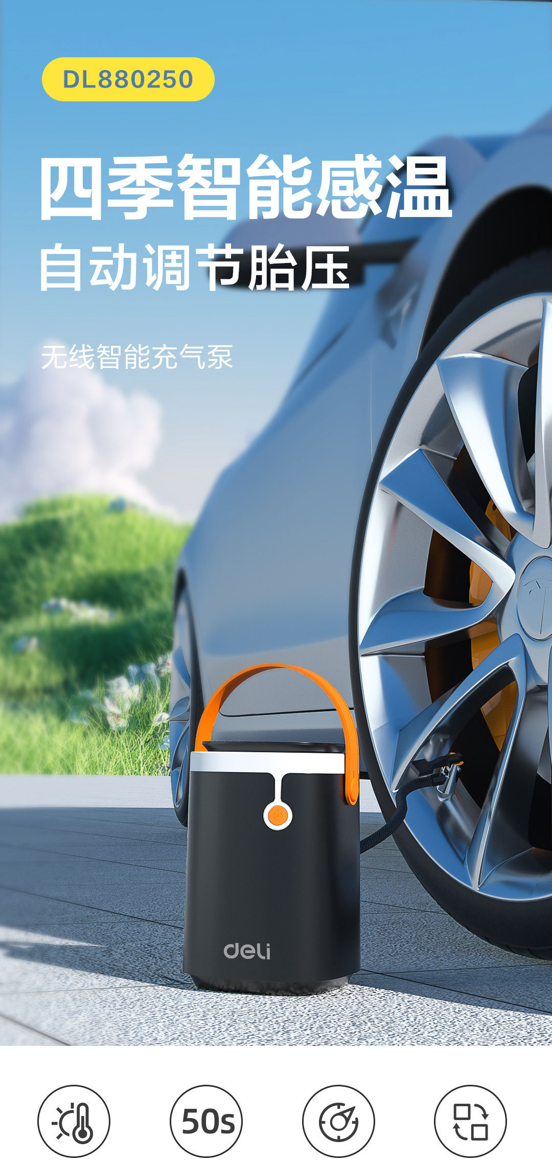 デリ スマート ワイヤレス 車用エア ポンプ デジタル ディスプレイ プリセット温度感知ポータブル DL880250