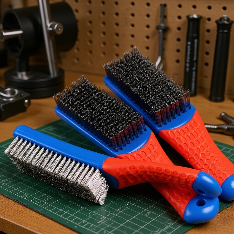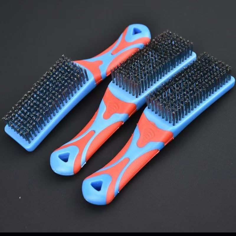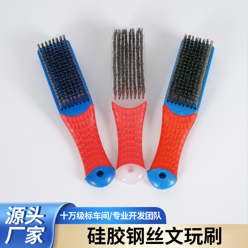 文玩钢丝刷子硅胶柄不锈钢钢丝刷金属除漆除锈刷抛光清理厂家现货