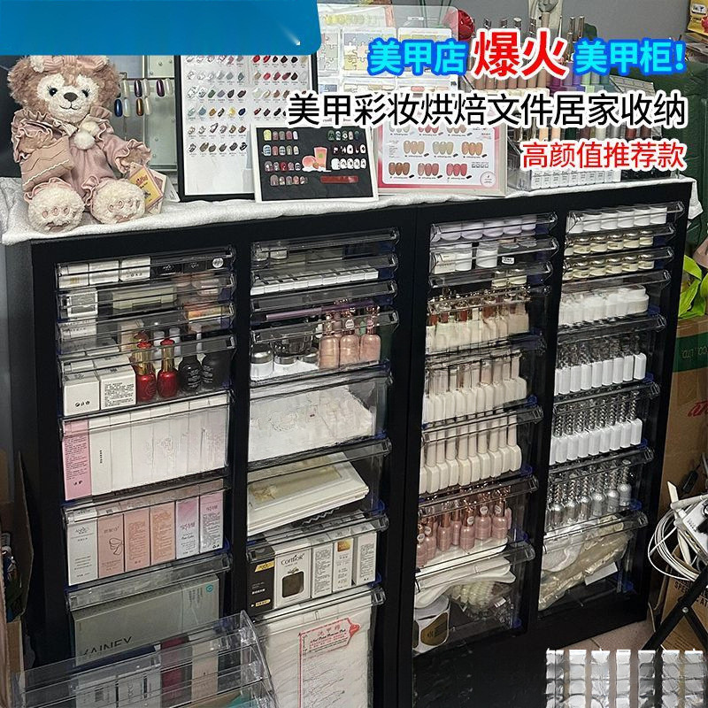 a4文件柜透明平底抽屉式化妆品美甲柜储物多层收纳柜铁皮柜档案柜