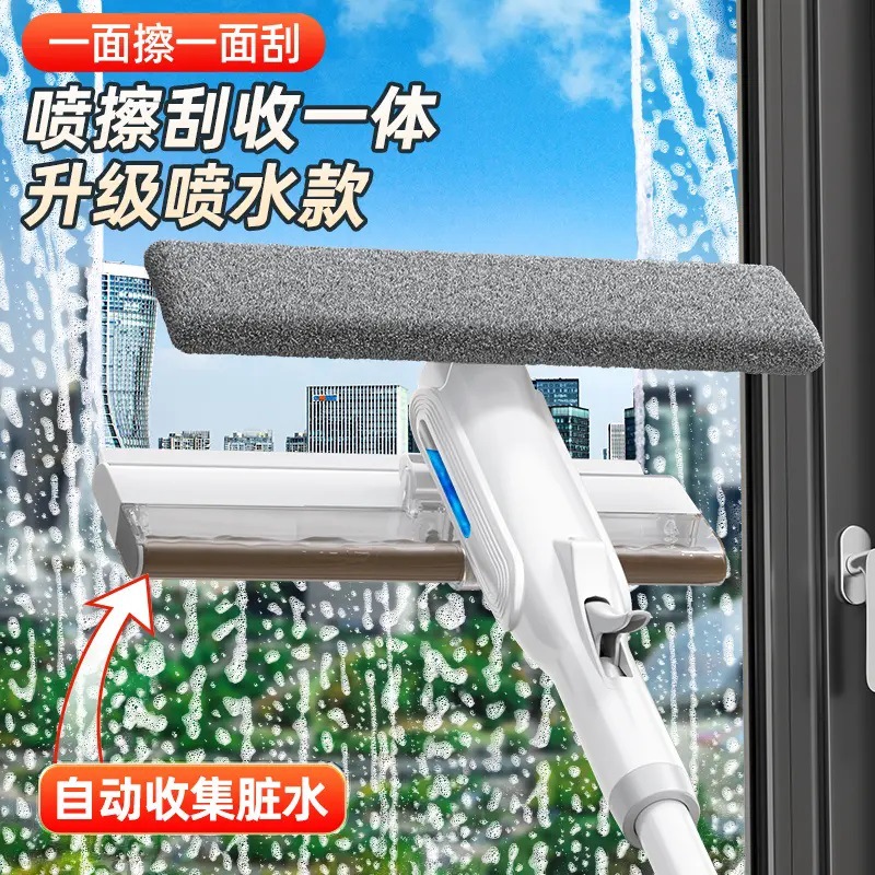 家庭用窓内外用ウォータースプレーガラスブラシ 高層伸縮式特殊洗浄ワイパー 両面スプレークリーナー