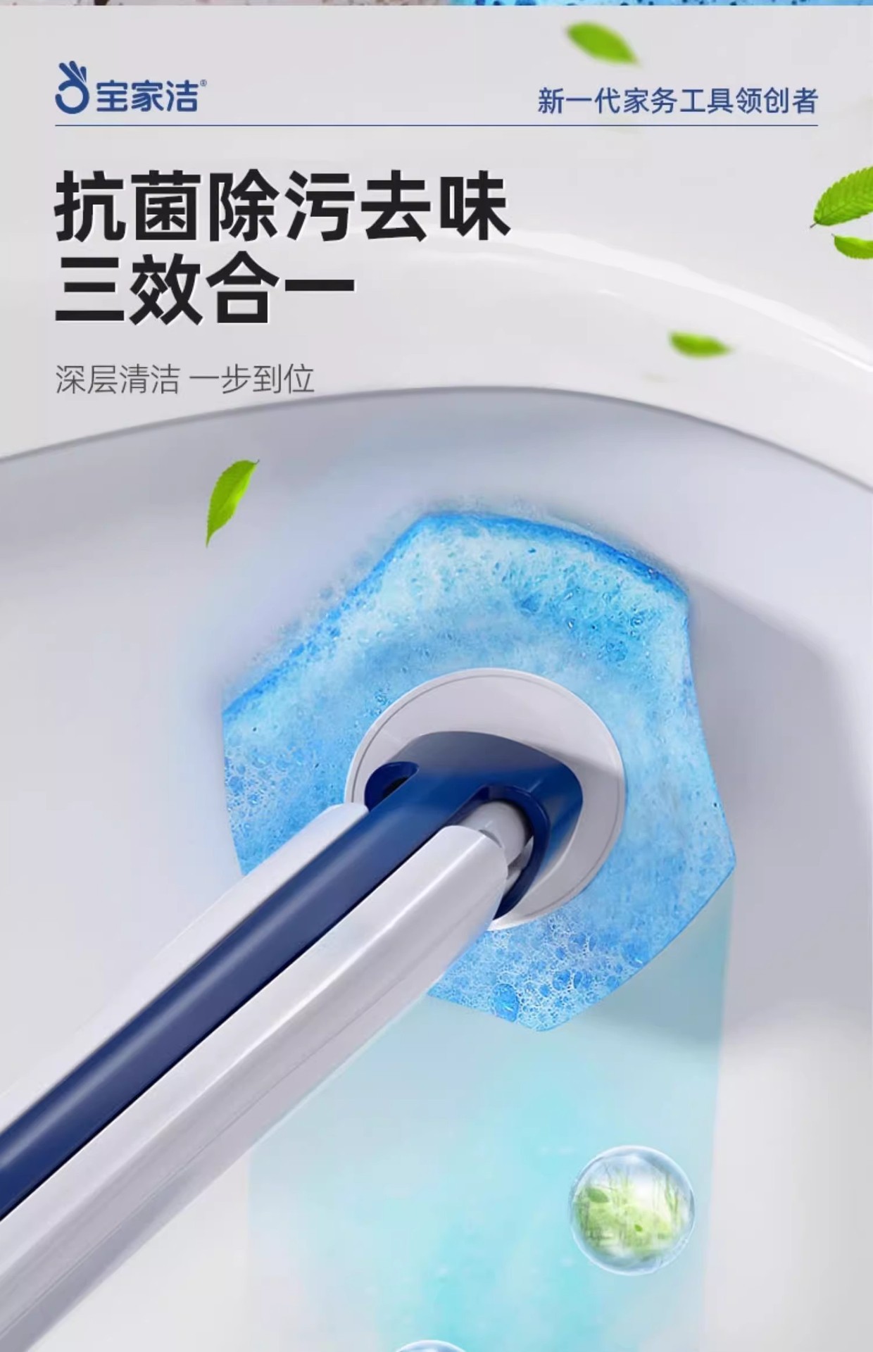 宝家洁一次性马桶刷家用无死角2025新款洗厕所刷子头壁挂清洁神器