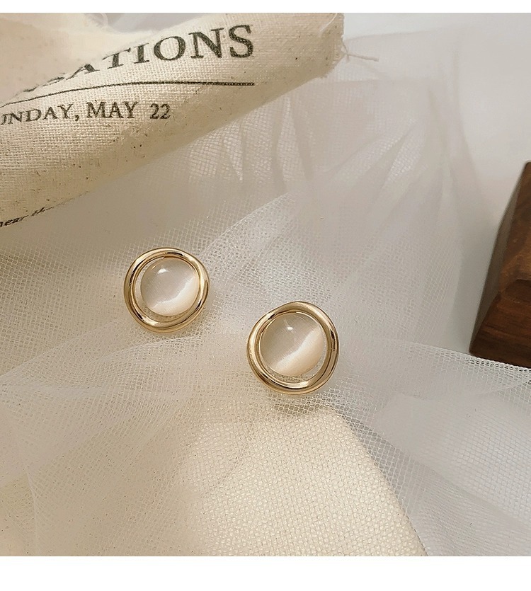 レトロな香港スタイルの女性用ラウンドキャッツアイイヤリング、軽い贅沢、ハイエンド、シンプルな気質のイヤリング、ニッチなデザインのイヤリング