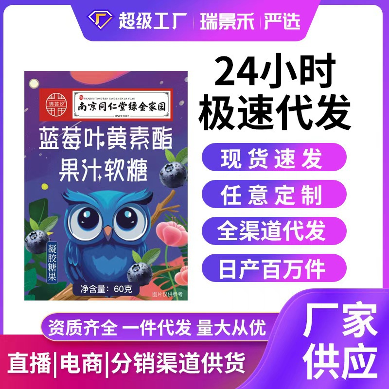 メーカー卸売りブルーベリー葉黄素ソフトキャンディ胡羅素ブルーベリー抽出葉黄素エステル濃縮60gスポット