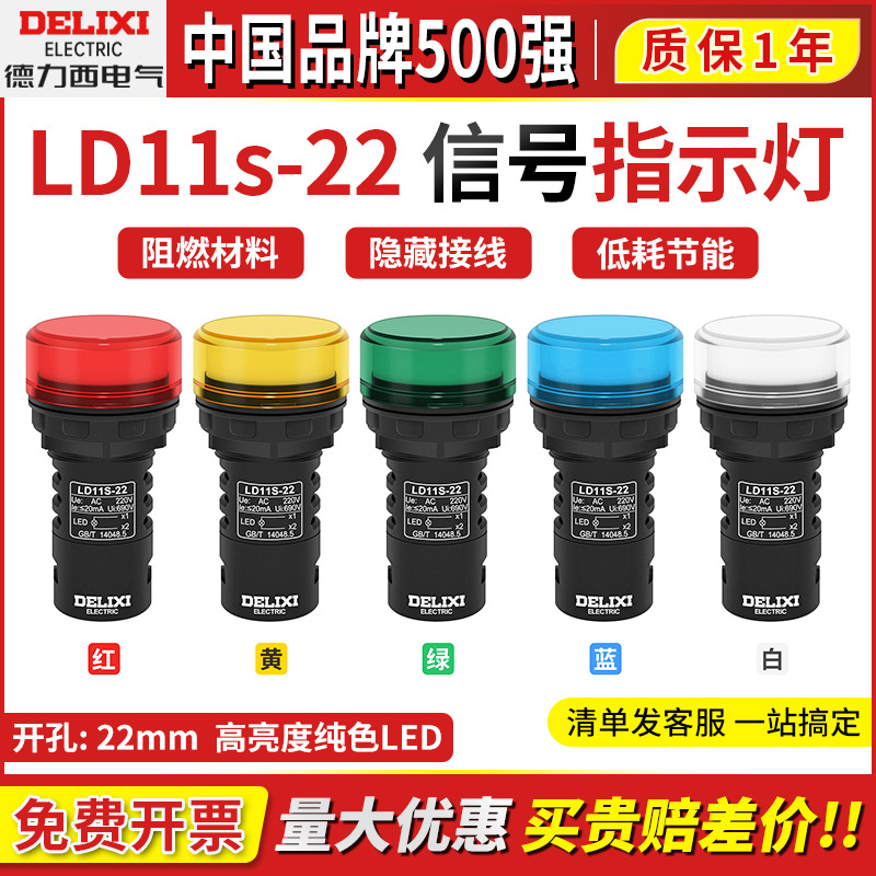 德力西LD11s-22D信号指示灯led高亮白蓝黄绿红色 24V220V380V通用