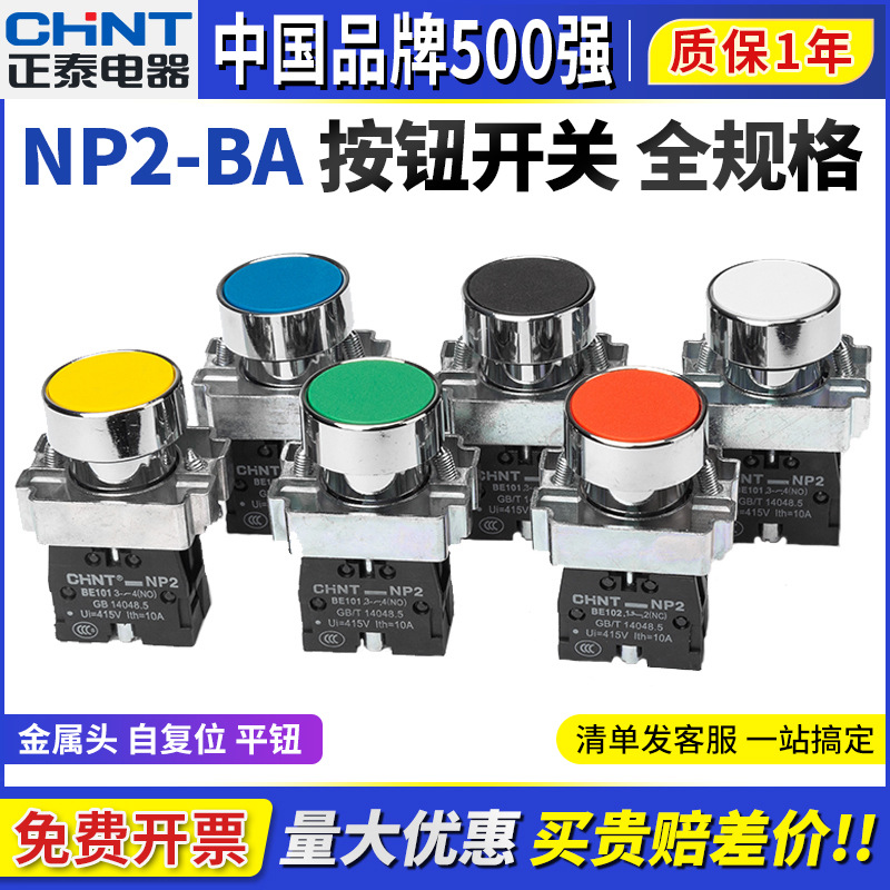 正泰开关按钮NP2-BA42自复位31启动停止平钮51红黄绿白色开孔22mm