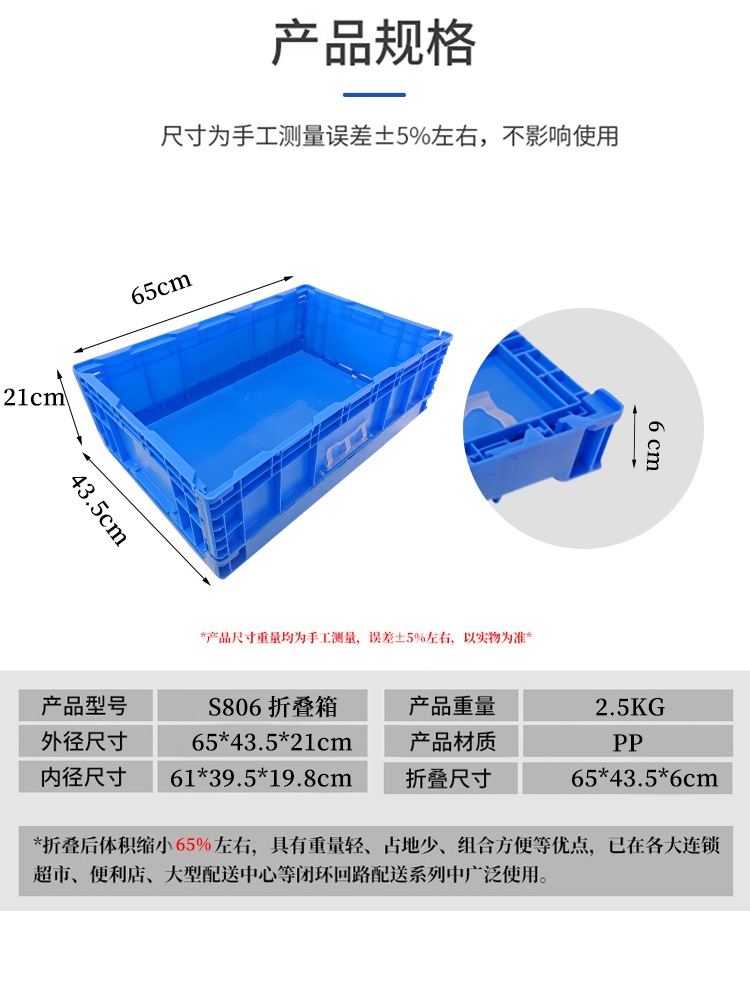 S806 厚みのある折りたたみプラスチックボックス収納多機能ボックス蓋付き折りたたみボックス移動と物流スタック可能