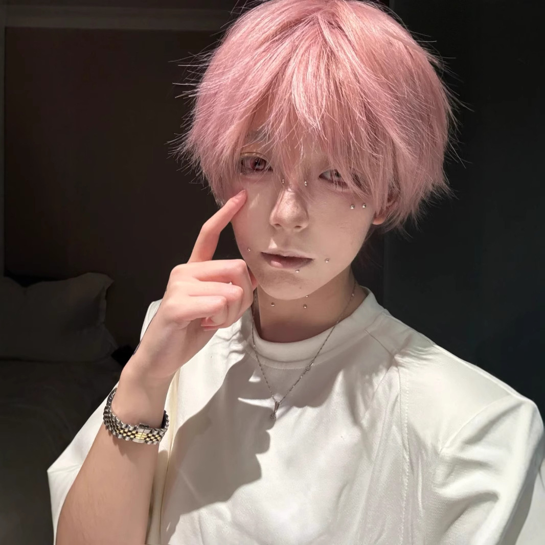 帝都粉色短发假发男士少年感气质帅气碎盖微分粉红色男全头套假毛