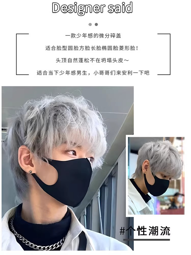 メンズショートヘアウィッグ学生cosスタイルダンスパーティーコスプレ白韓国版ハンサムおばあちゃんグレー偽毛卸売