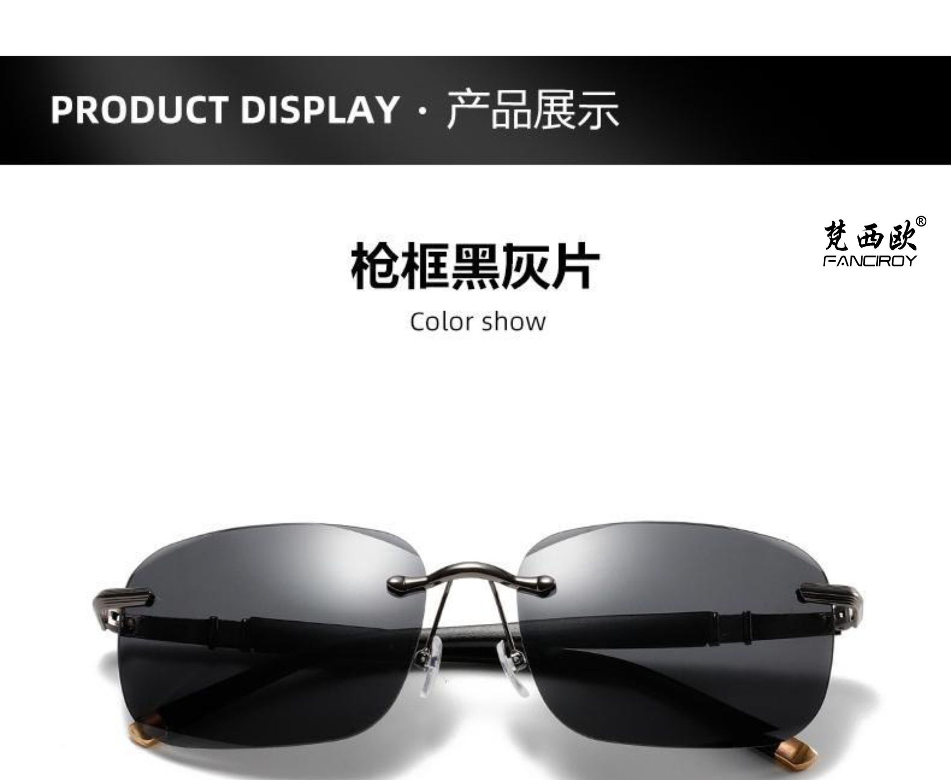 新しいホット販売ヨーロッパとアメリカのファッションフレームレスエッジカットサングラスメンズスタイルスクエアフレーム抗紫外線ドライビングサングラス