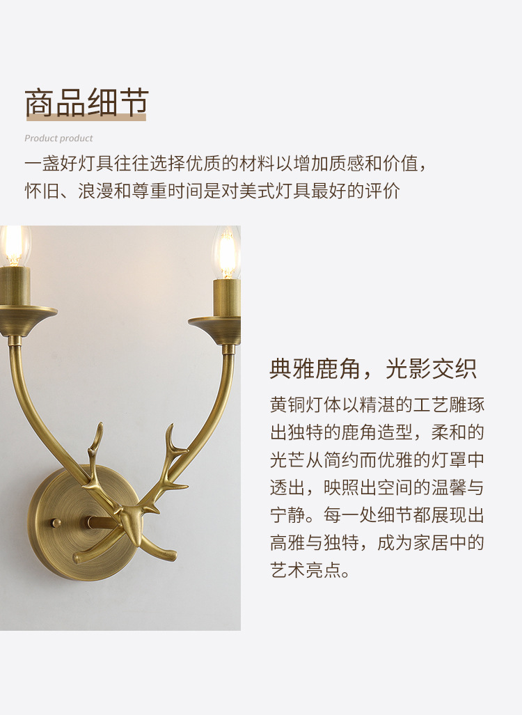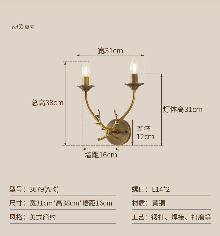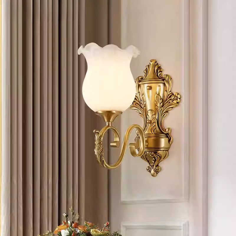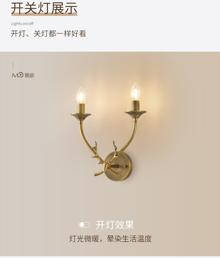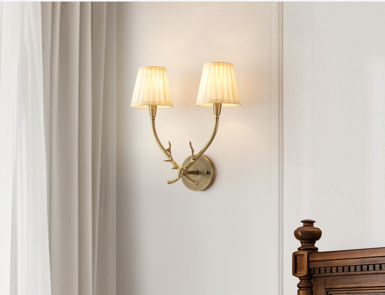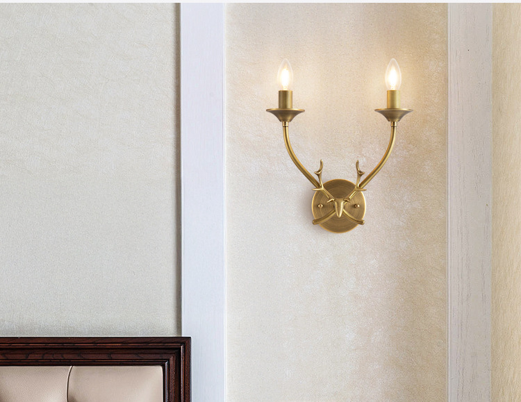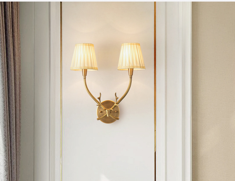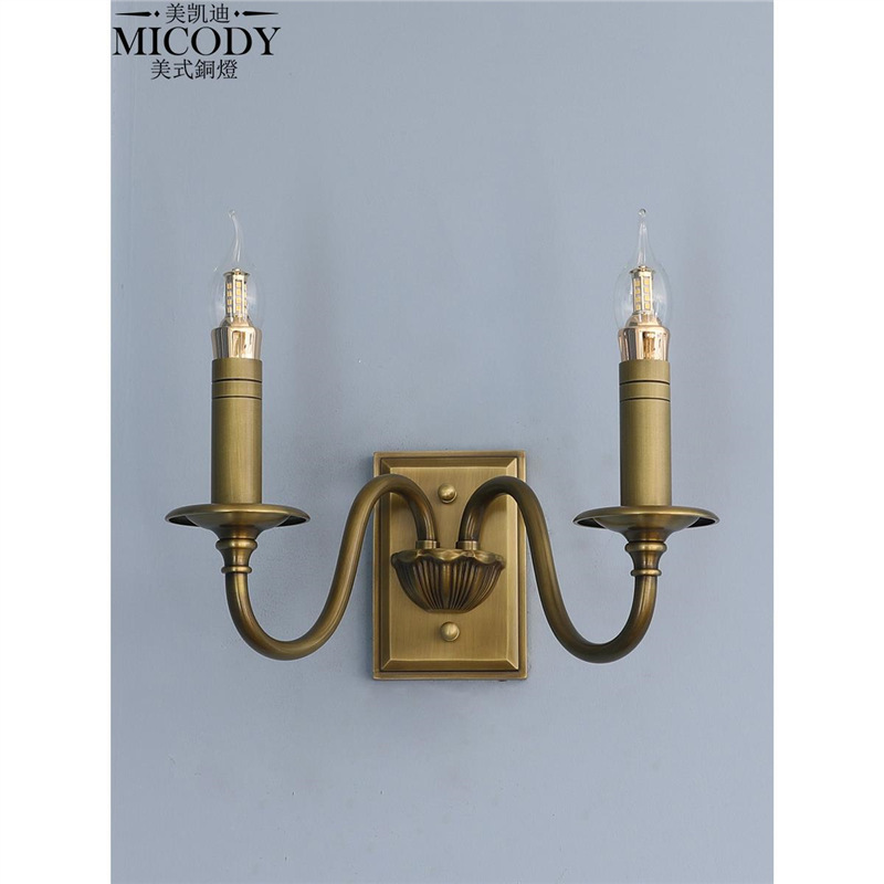 アメリカンリビングルーム背景壁ベッドサイド通路階段照明器具北欧シンプルな書斎シングルおよびダブルキャンドル全銅壁ランプ