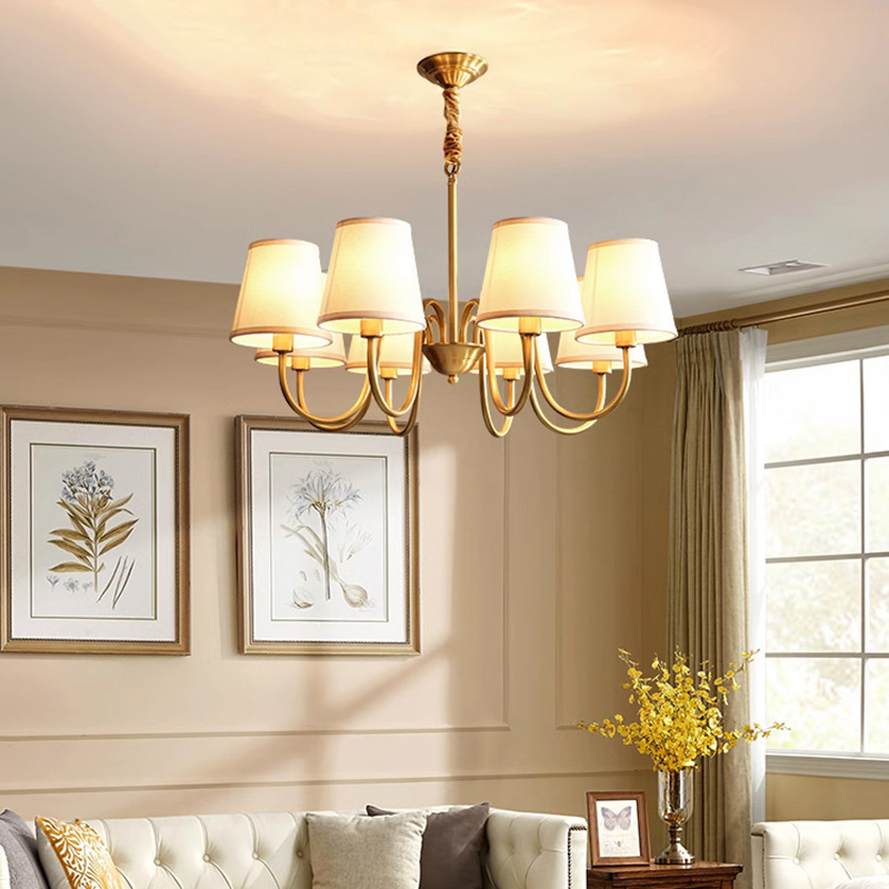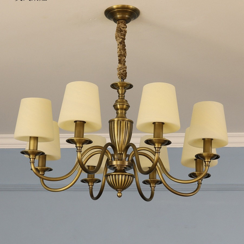 アメリカンオール銅シャンデリアリビングルームライトメインライトシンプルモダンレトロ中世クリームスタイルレストランベッドルームライト66650