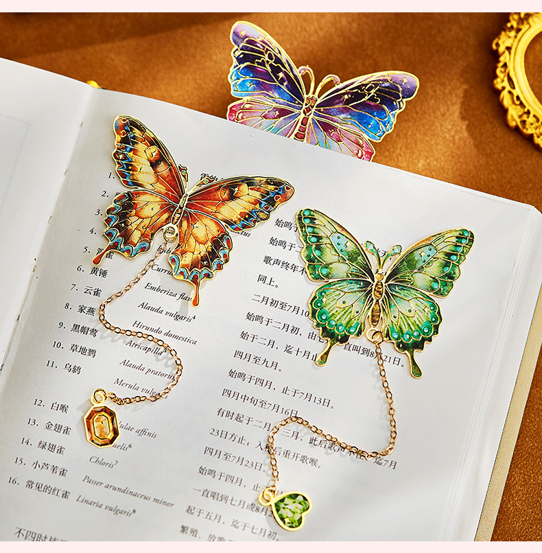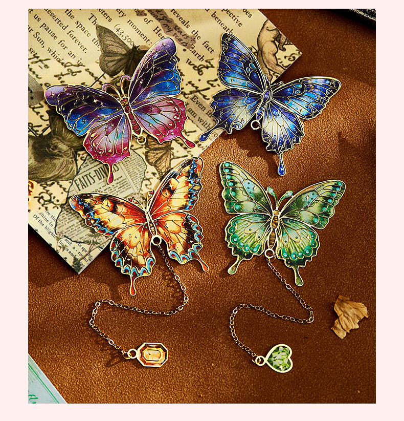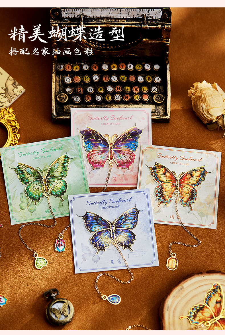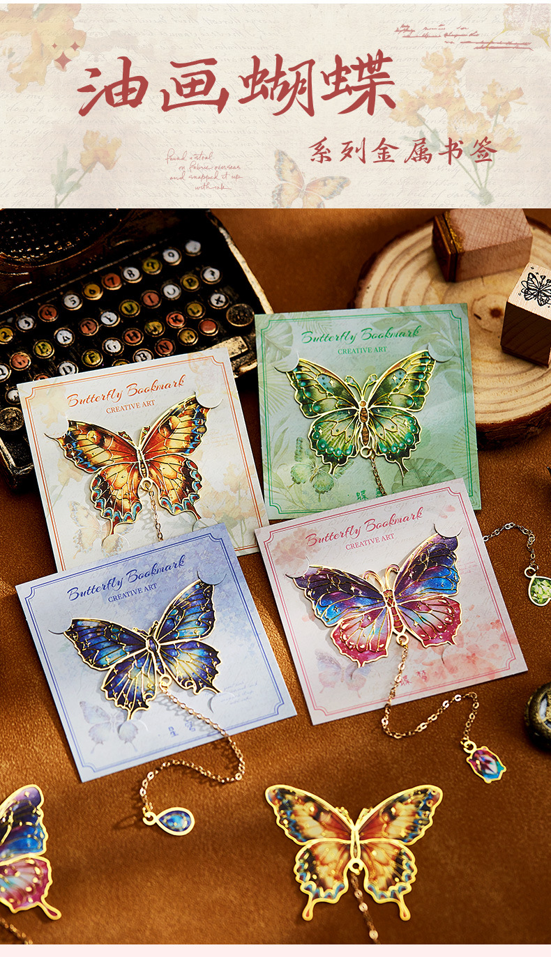 レトロな油絵蝶メタルブックマーク高価値インかわいいペンダント読書ブッククリップ学生のご褒美小さなギフト