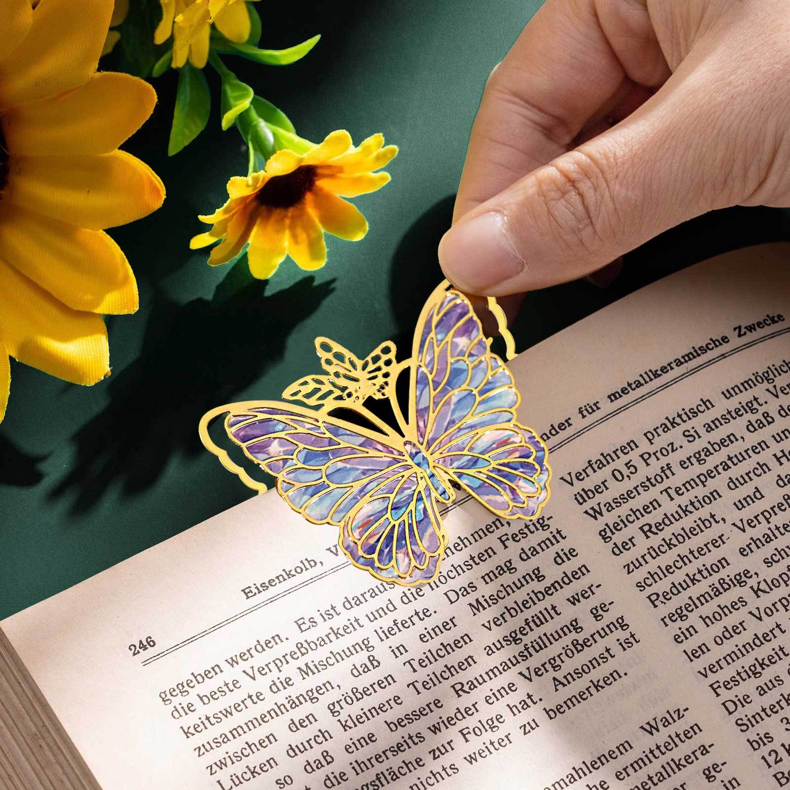 レトロな蝶の金属製ブックマーク、芸術的で高級感があり、学生の読書用ページクリップ、卒業祝いの贈り物