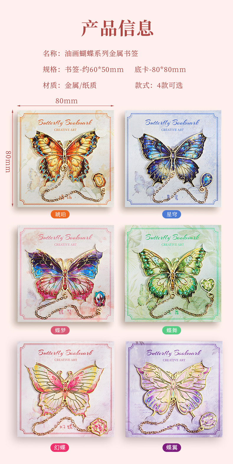 見誠品画中蝶シリーズ油絵ブックマーク復古異形蝶学生読書本サインクリップ卸売り
