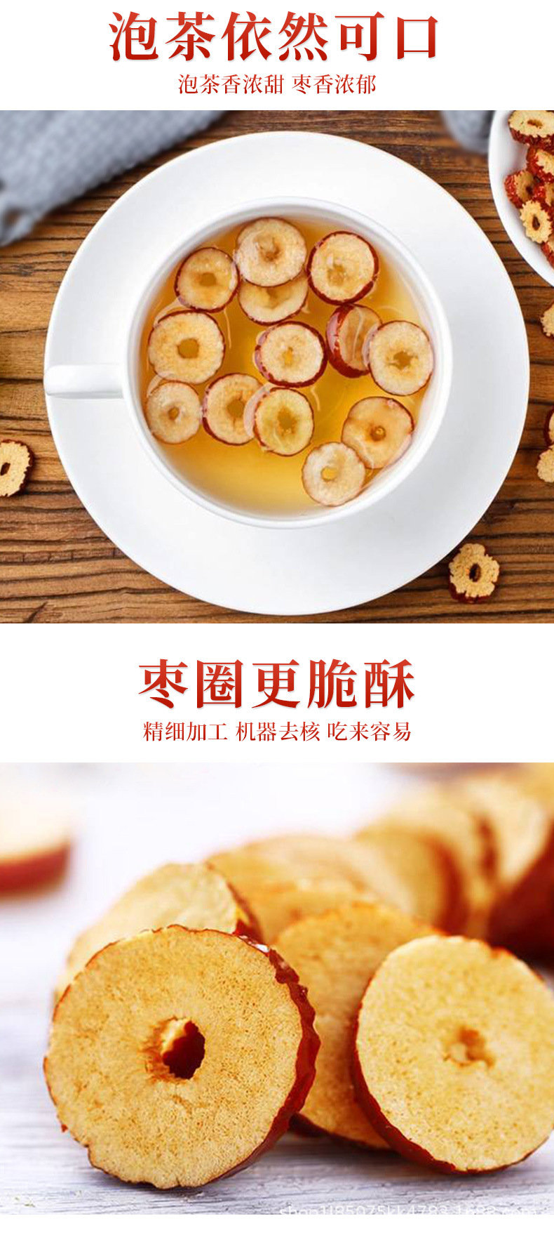 新疆ナツメリング、乾燥赤ナツメ、すぐに食べられるスナックナツメ、スライス、サクサク、乾燥、オイルフリー、種なし