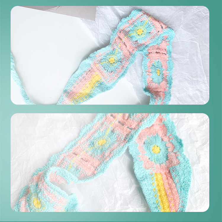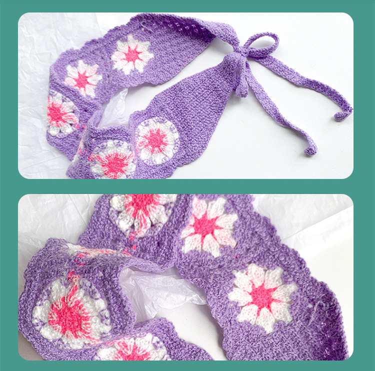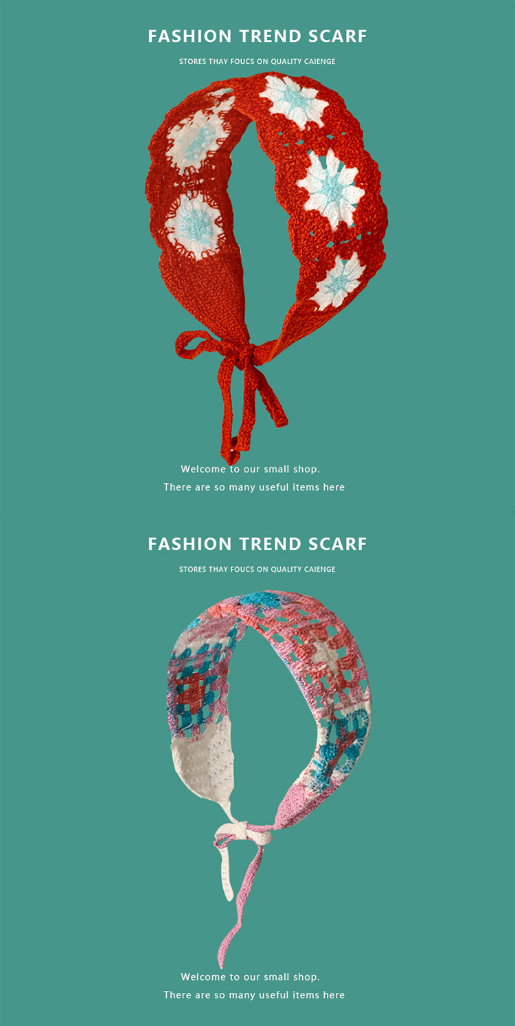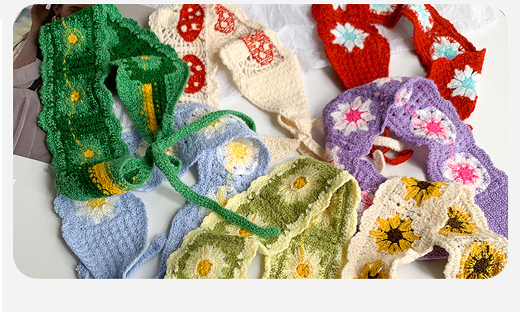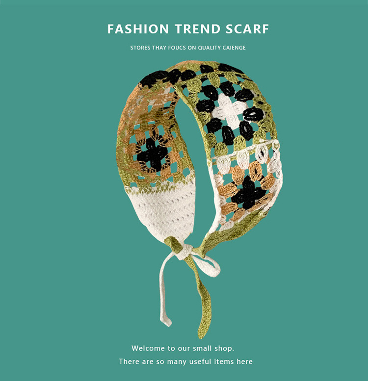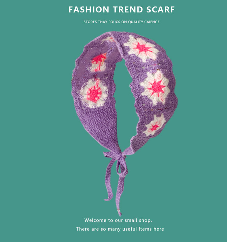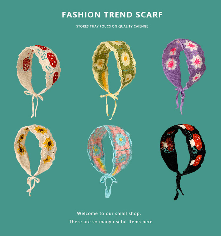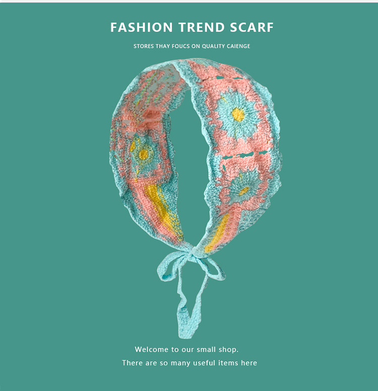 甘い牧歌的なスタイルのニットヘッドバンドスカーフ女性の春のヘアアクセサリー手作りかぎ針編み三角スカーフハイエンド旅行卸売