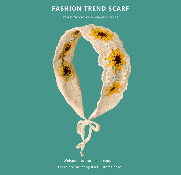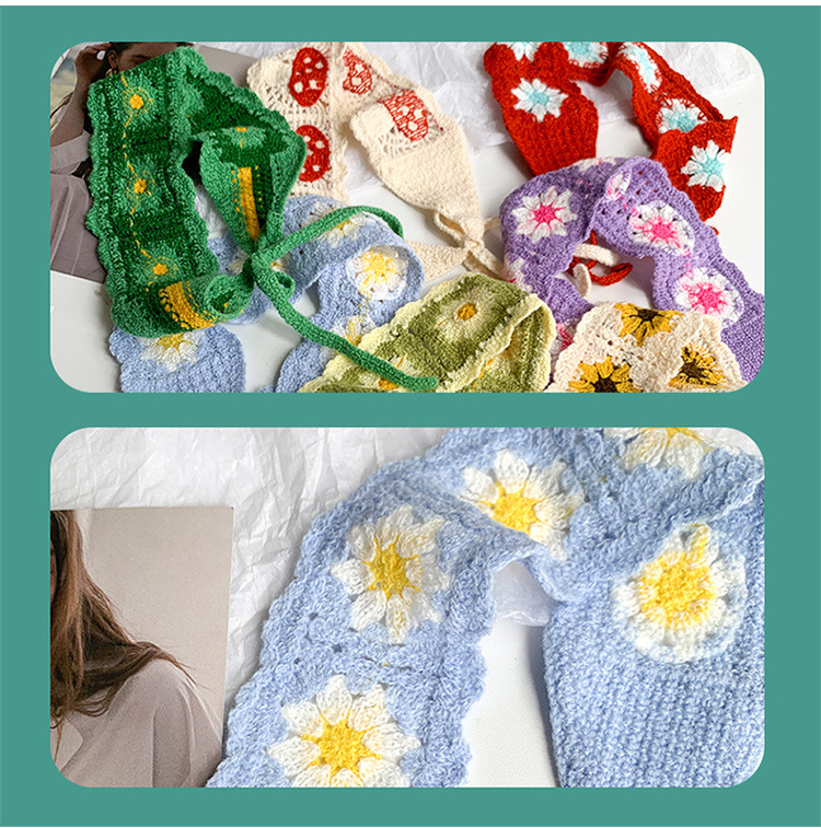 田园风针织头巾女三角巾发带春季可爱风出游甜美手工发饰钩花