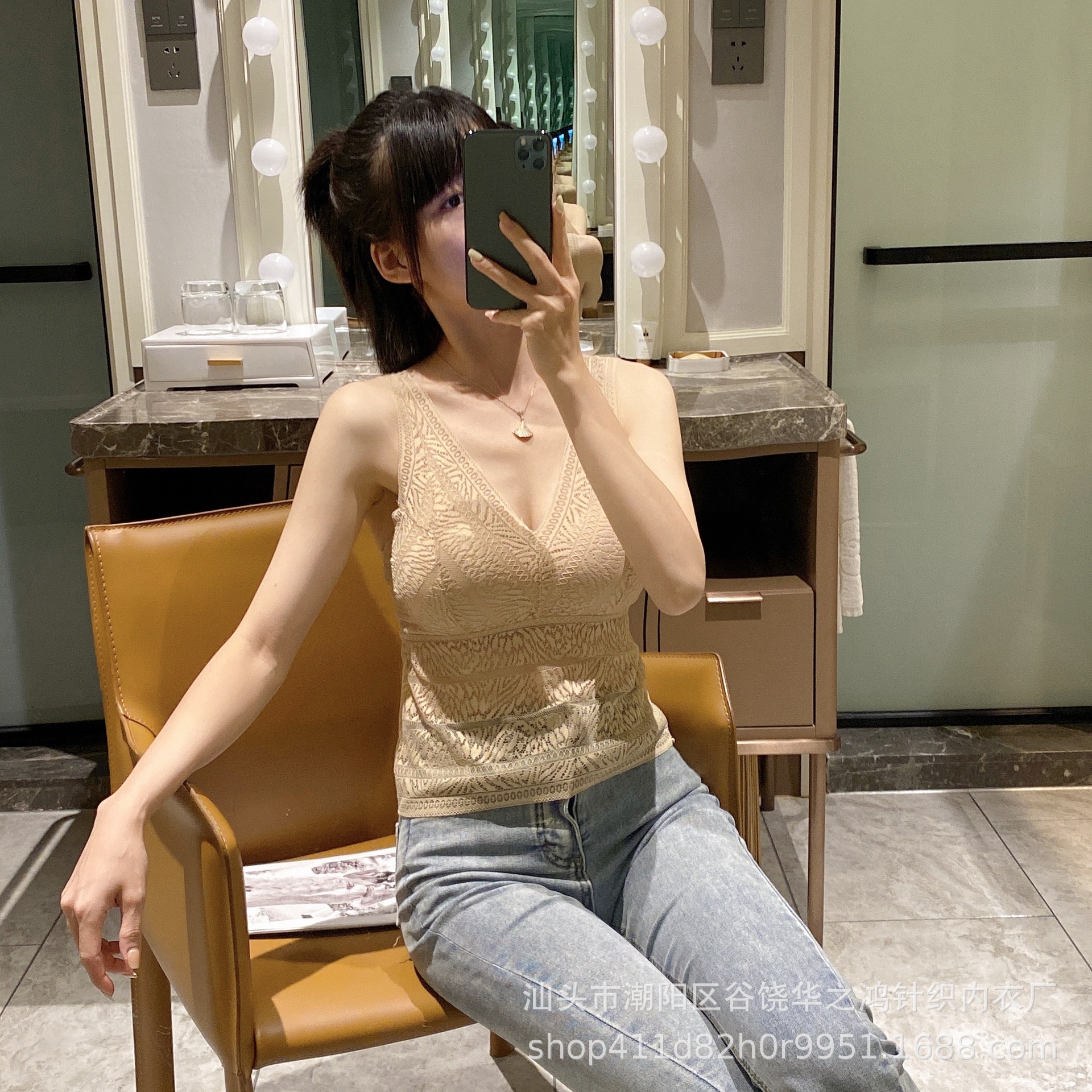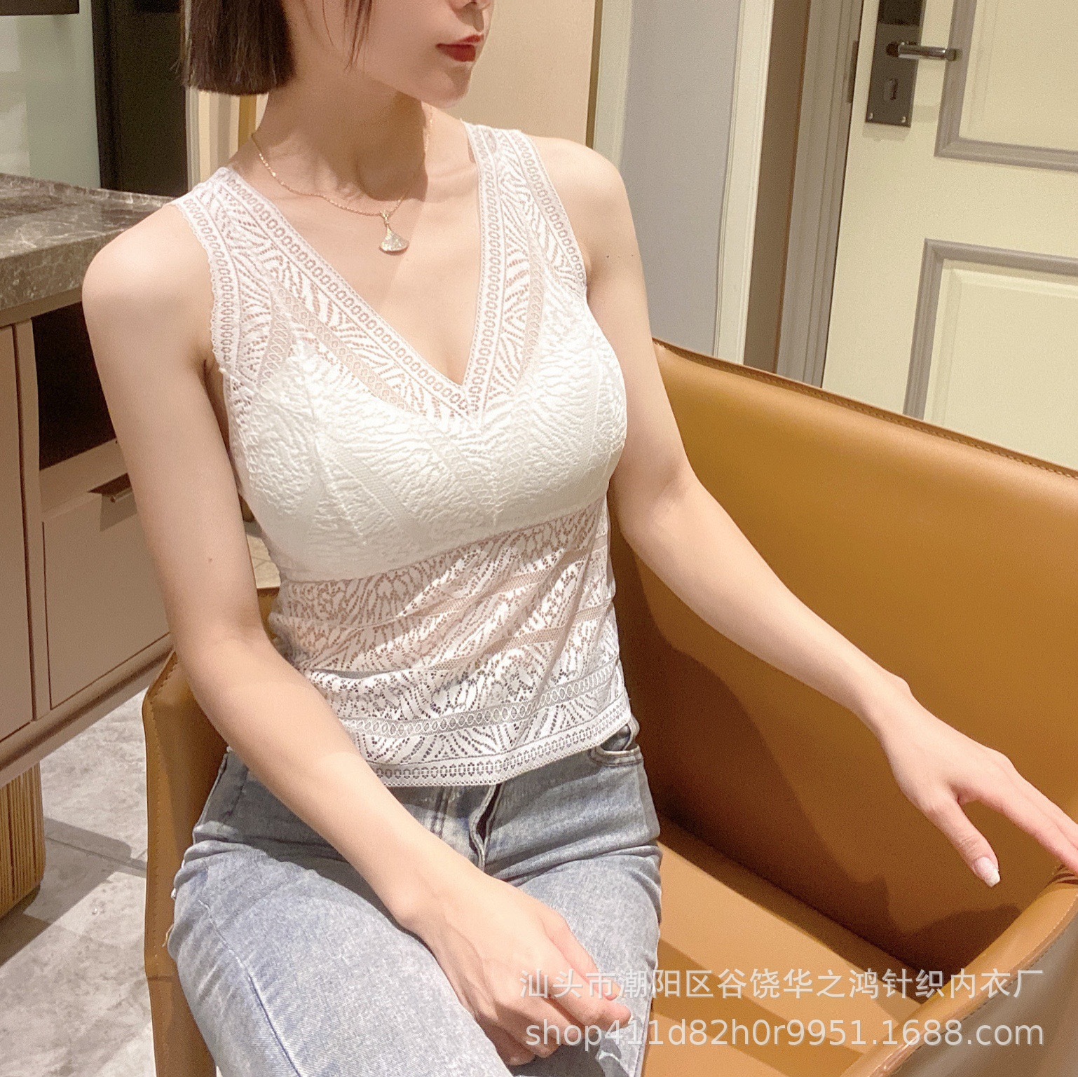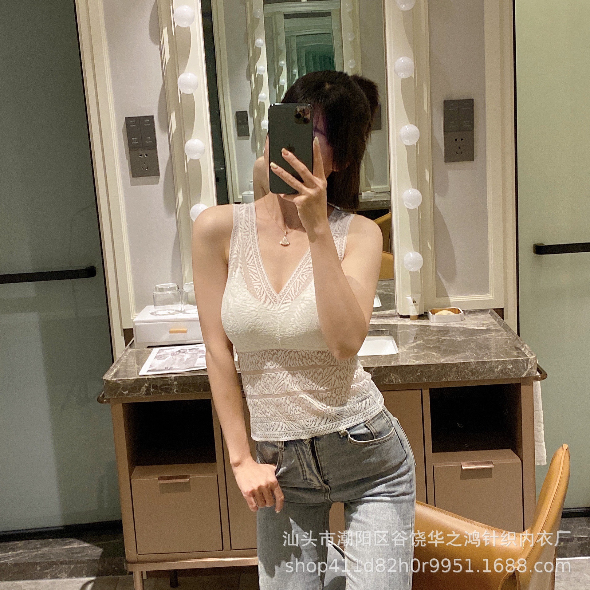 春夏新作フルレースVネックミドル丈美背中胸巻きアウターボトム万能レースベスト工場直販