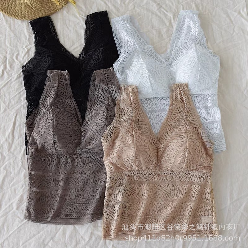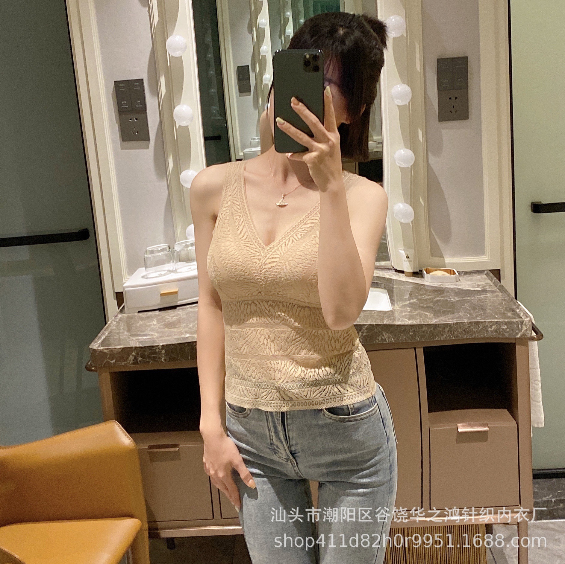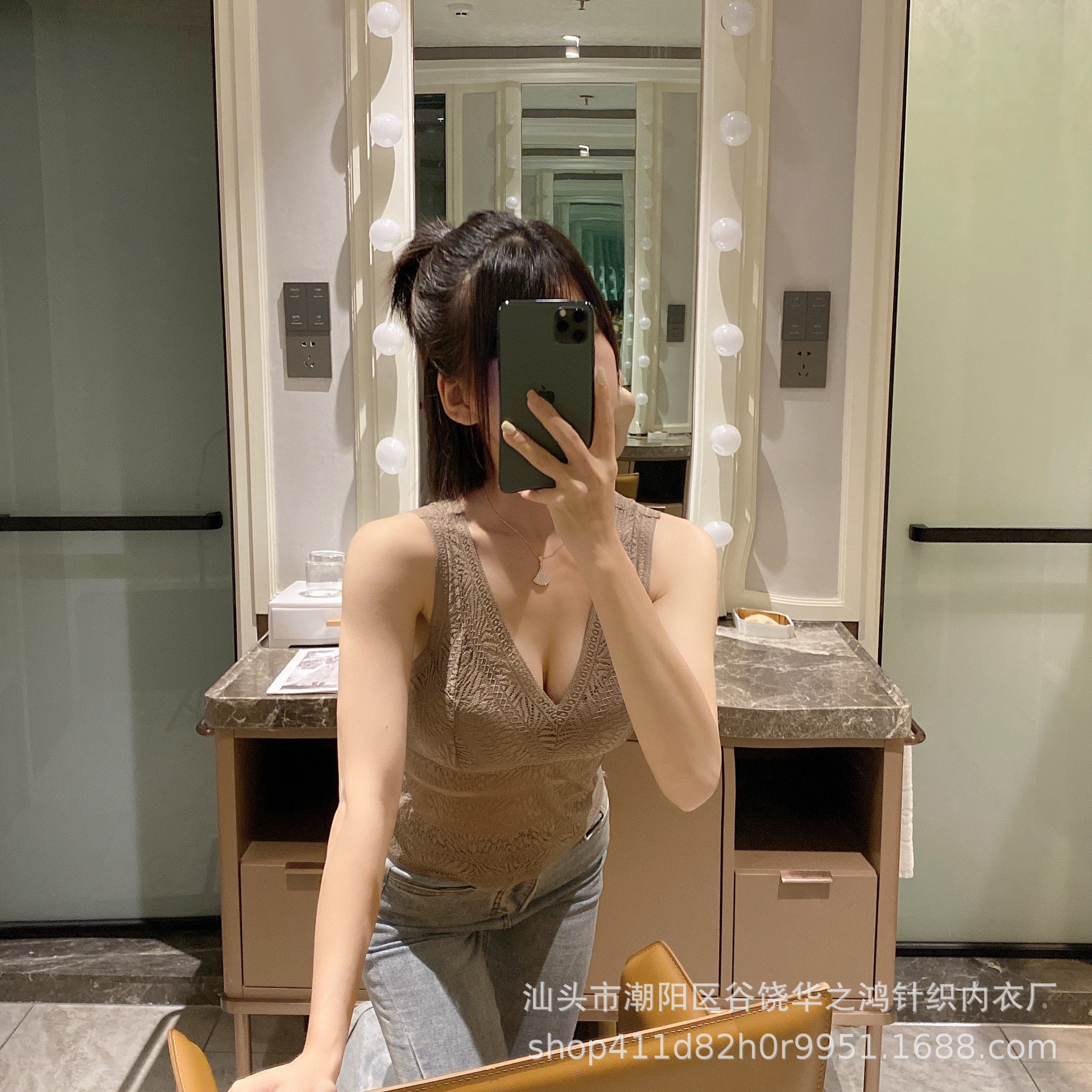 春夏新作フルレースVネックミドル丈美背中胸巻きアウターボトム万能レースベスト工場直販