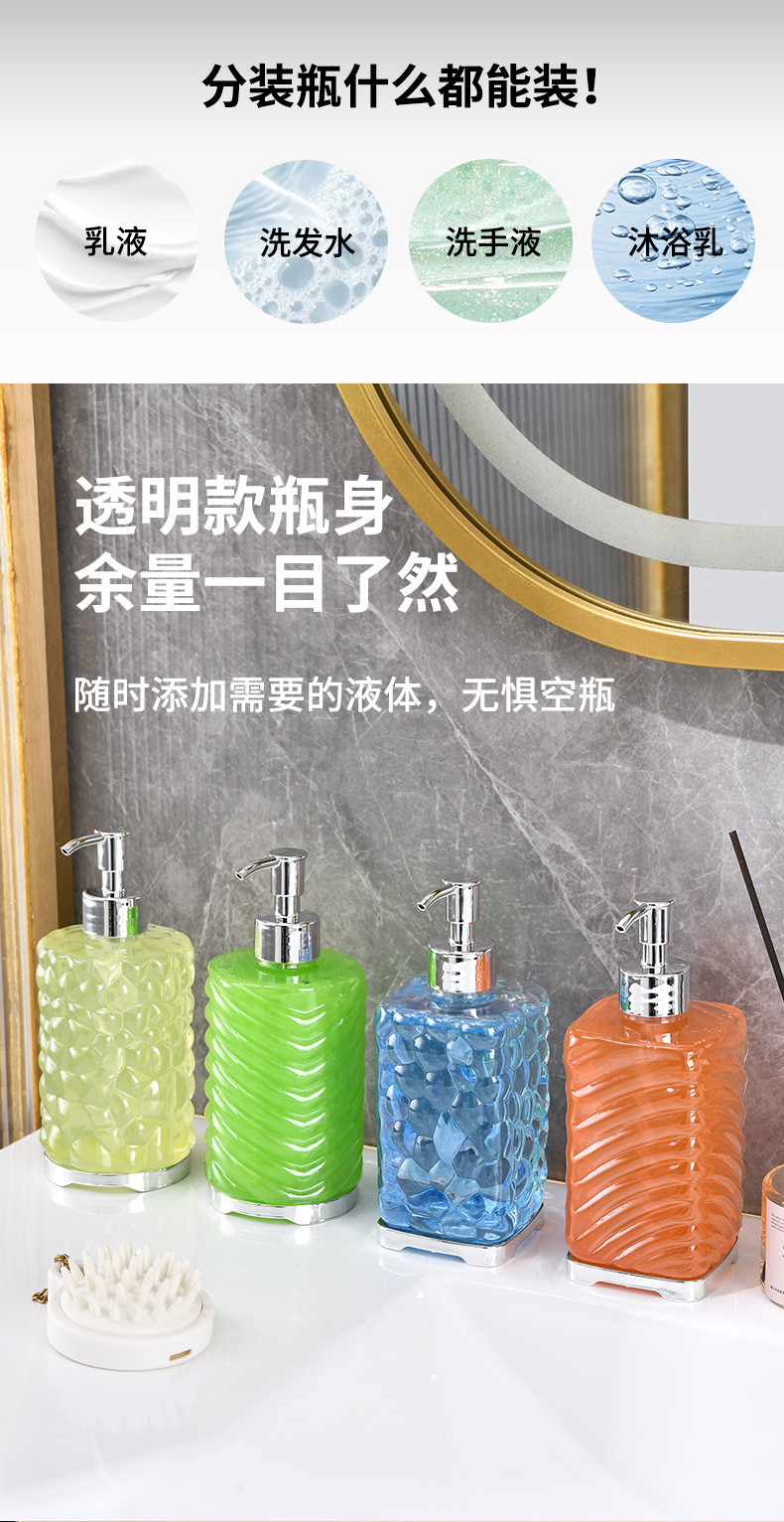 国境を越えた新型プレス分注瓶浴室シャンプー入浴露瓶軽贅沢透明手洗い液収納泡立て器