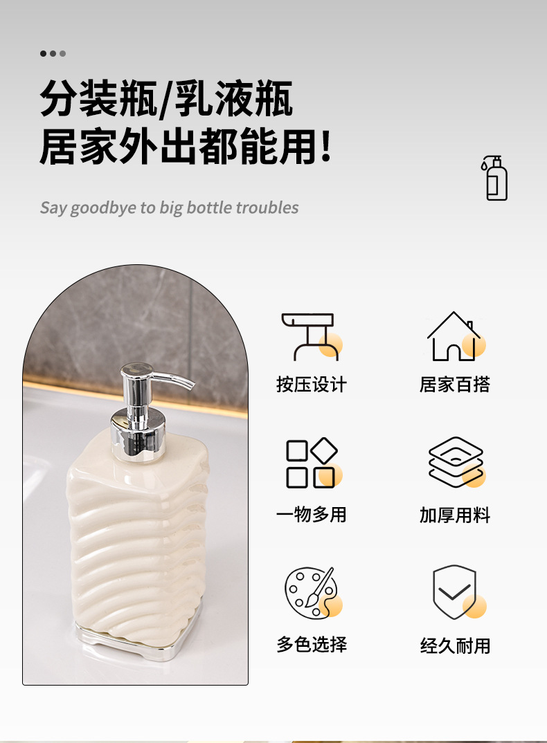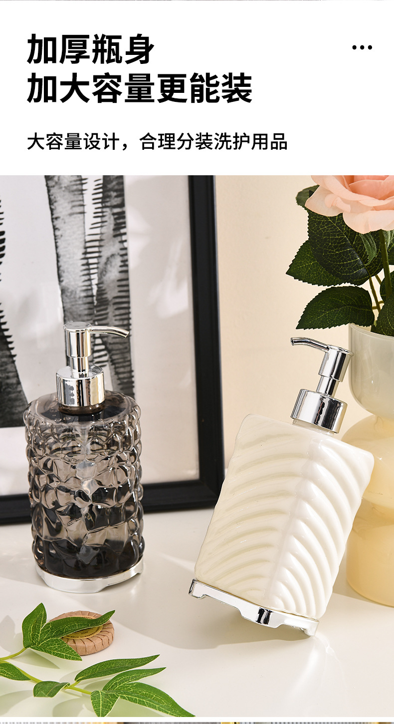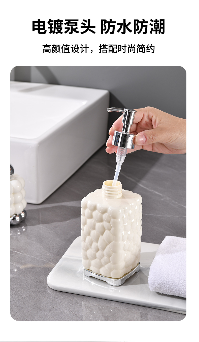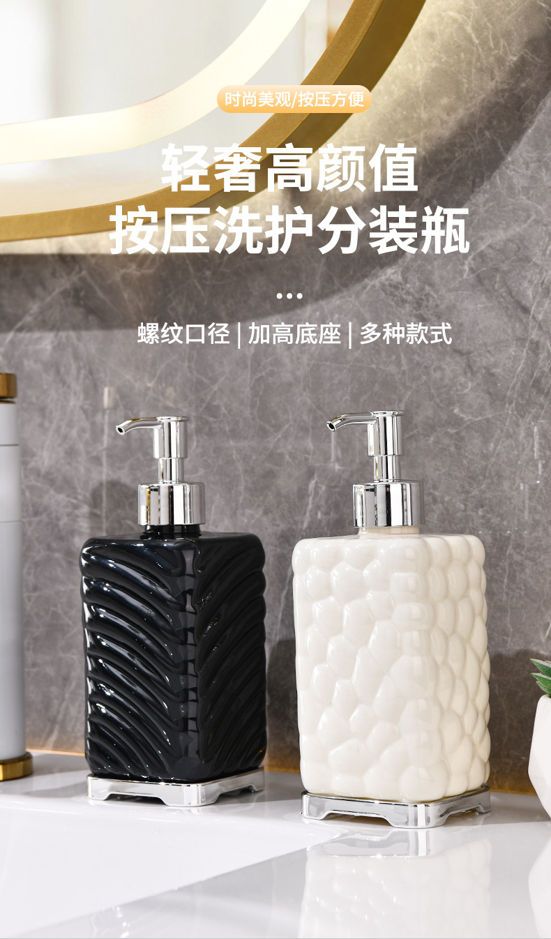 创意陶瓷卫生间乳液分装瓶子高颜值酒店家用洗手液高级按压空瓶