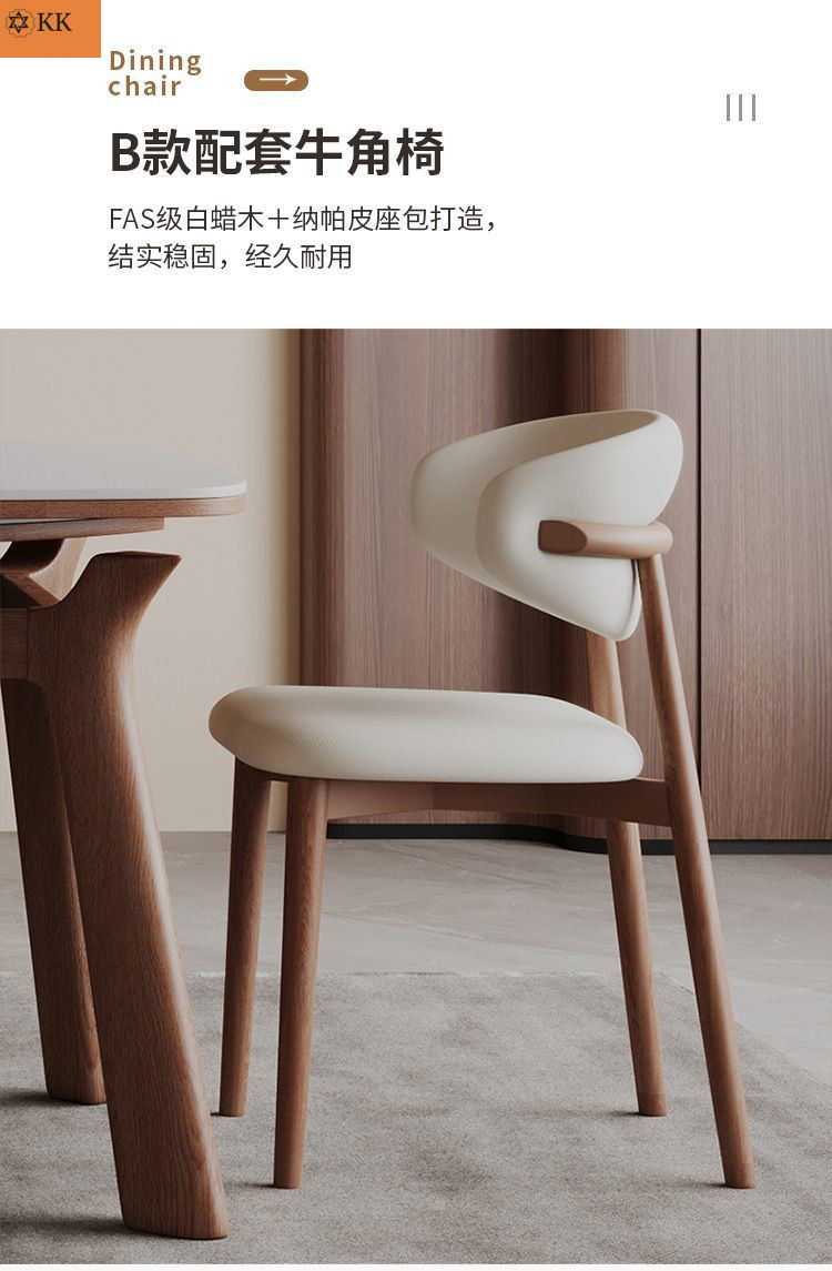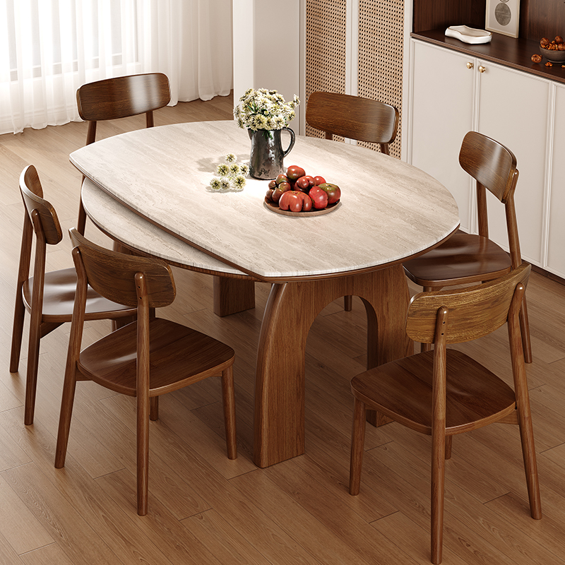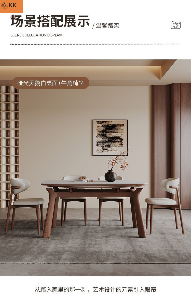中古风洞石木纹岩板实木餐桌椅组合家用小户型可伸缩叠可变圆餐桌