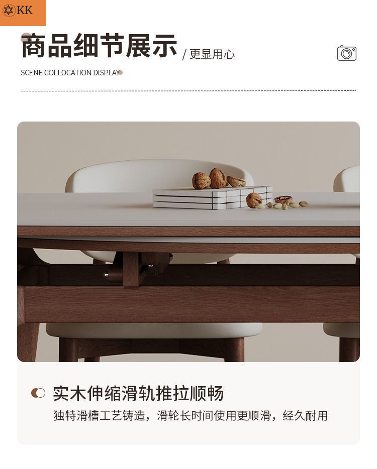 伸縮岩板実木食卓家庭用小戸型可変円卓現代シンプルで贅沢な周囲両用食卓