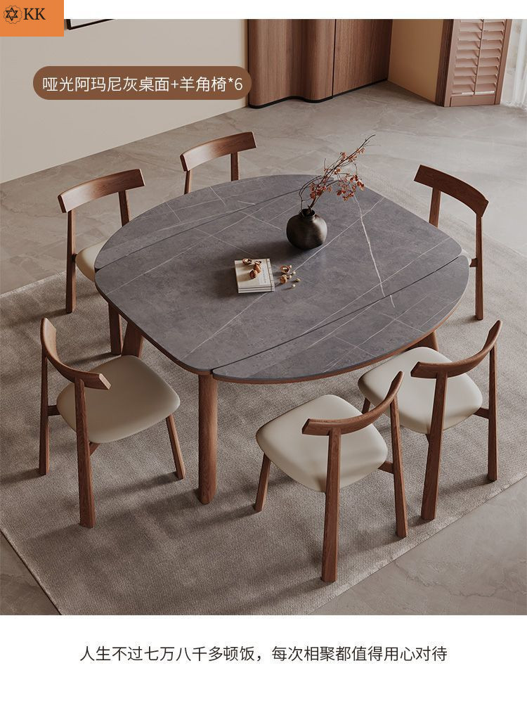 伸縮式スレート無垢材ダイニングテーブル、家庭用小型可変ラウンドテーブル、モダン、シンプル、軽い高級感、正方形と円形の兼用ダイニングテーブル