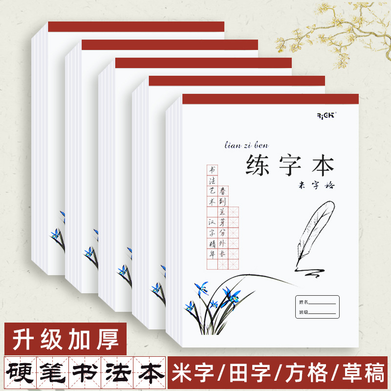 ライト手帳硬筆書道練習字本厚さ16k大サイズの田字格練習紙米字小中学生