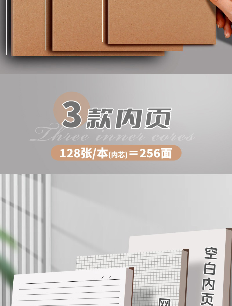 A4 極厚クラフト紙ノート 厚みのある大型ノート b5 シンプル大学院入試方眼横線 a5 クラフト紙ノート