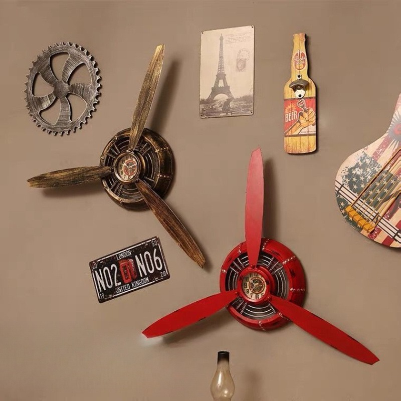 バーの壁の壁の装飾の鉄の芸のプロペラの壁掛けは古い復古の工業の風の壁の装飾の飛行機の頭の掛け時計のペンダントをします。