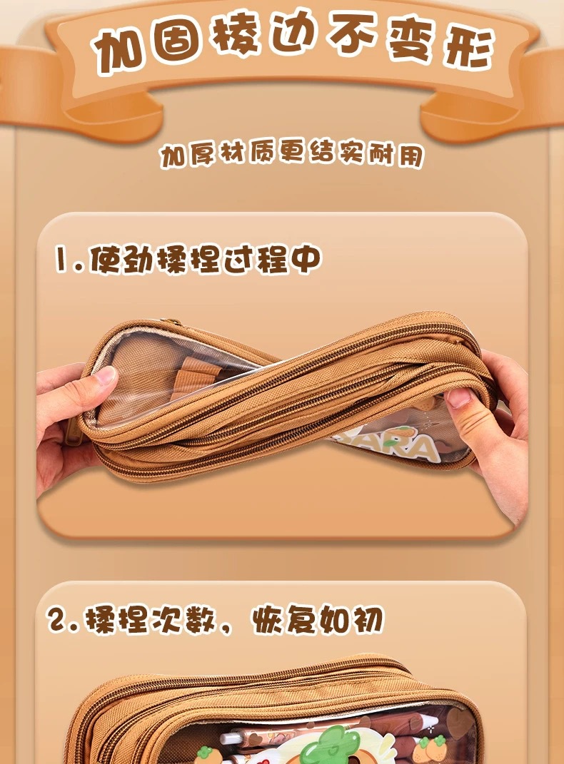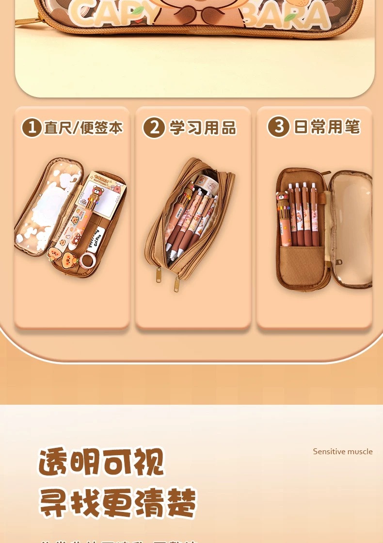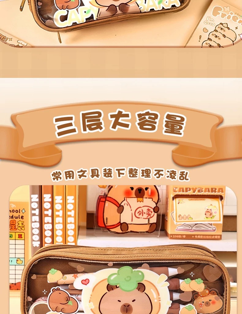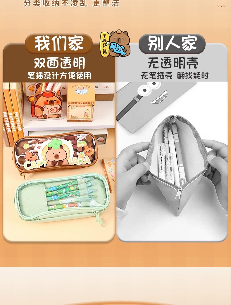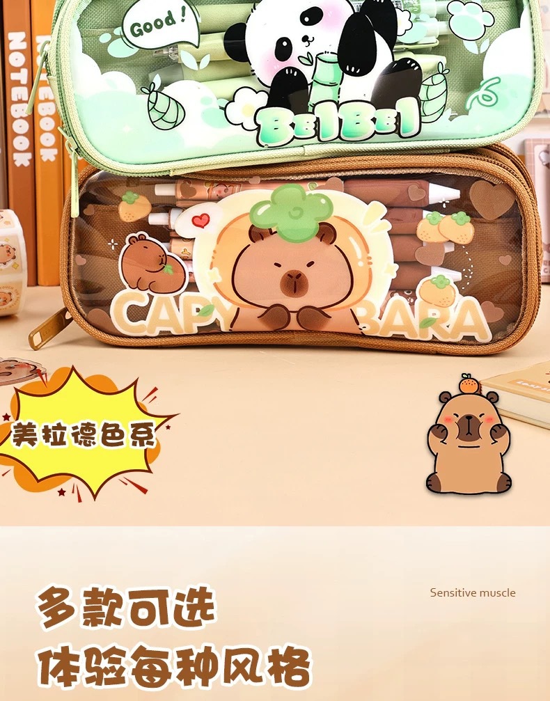カピバラのストレス解消ペンケース、超大容量で見た目も素敵な文房具ボックス、2025年新作、可愛い子供/女の子向けバージョン