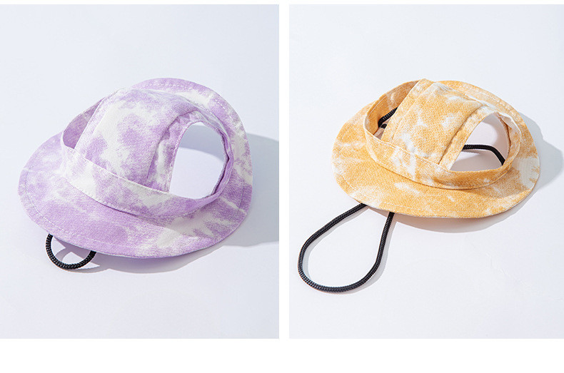ブルーのタイダイバケットハット,黄色の絞り染めバケットハット,オレンジのタイダイバケットハット,パープルのタイダイバケットハット