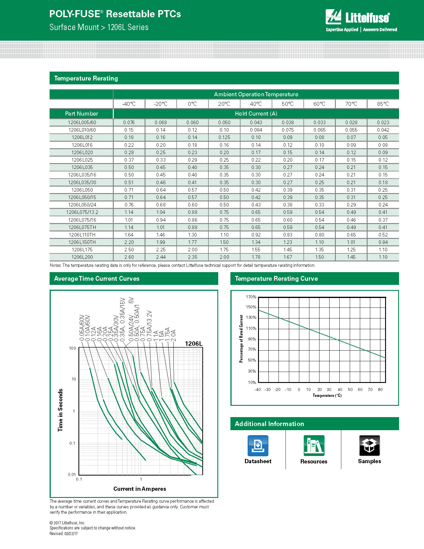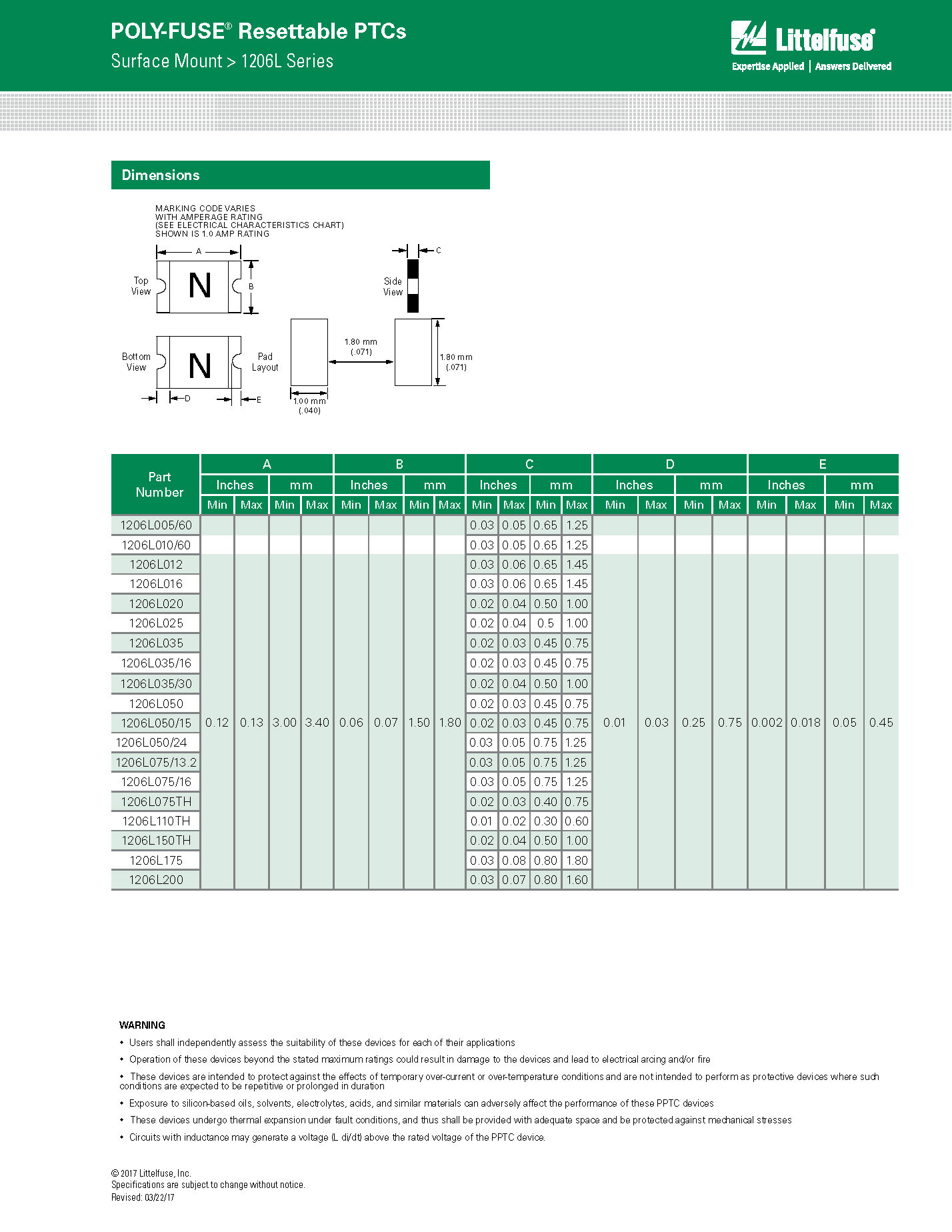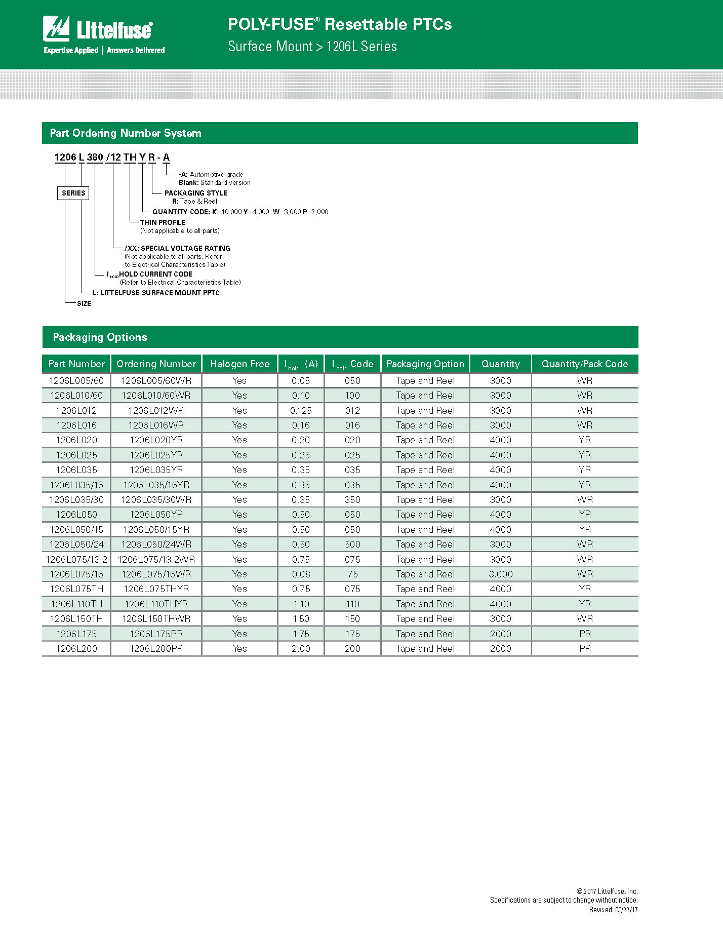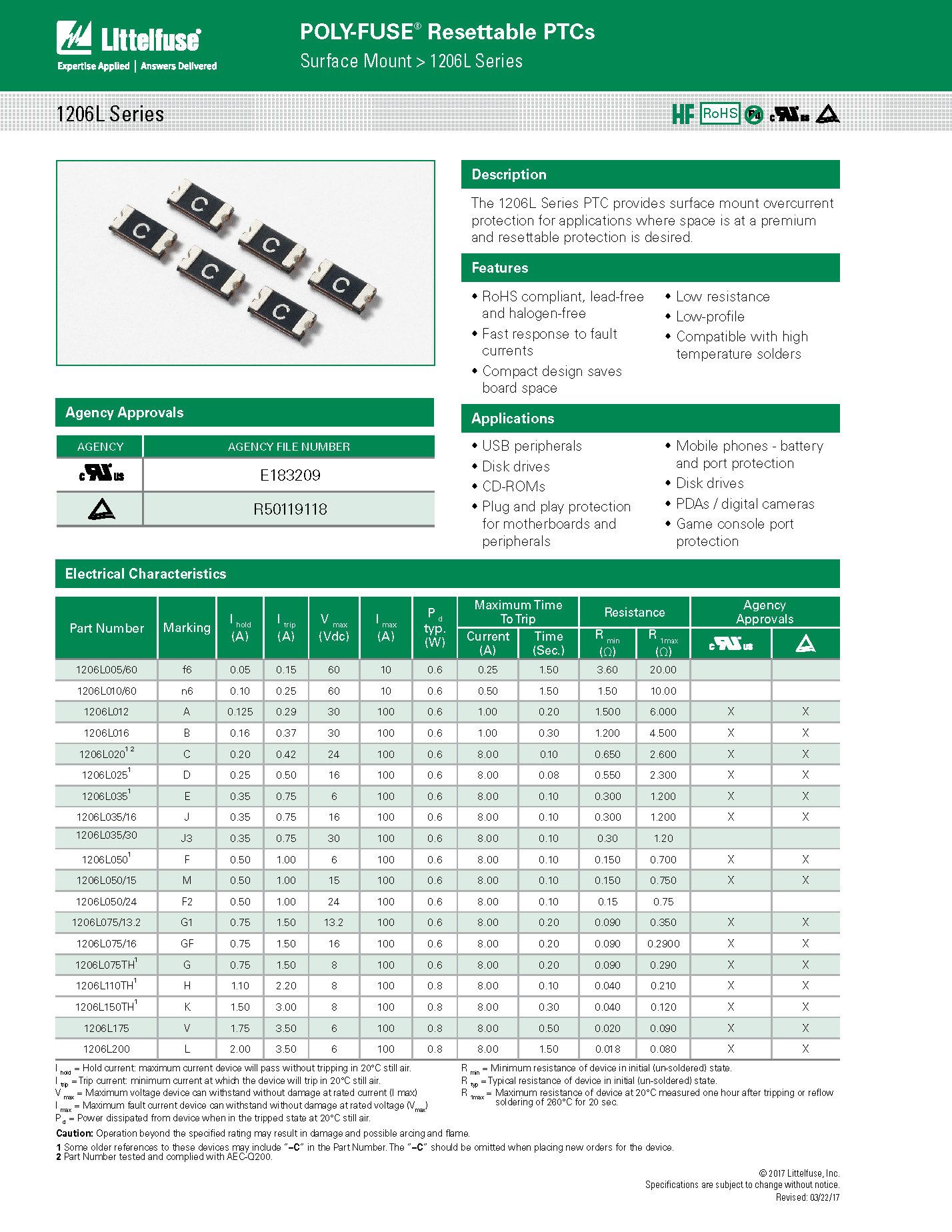 Littel ヒューズ 1206L050/15YR-A 自己回復ヒューズ ヒューズ低抵抗 PPTC デバイス
