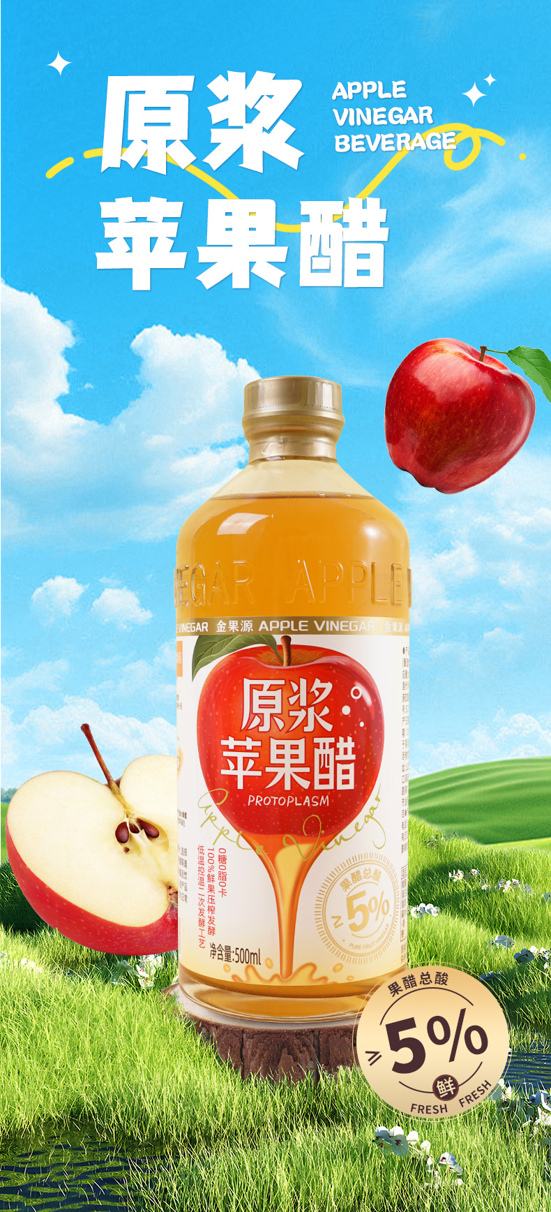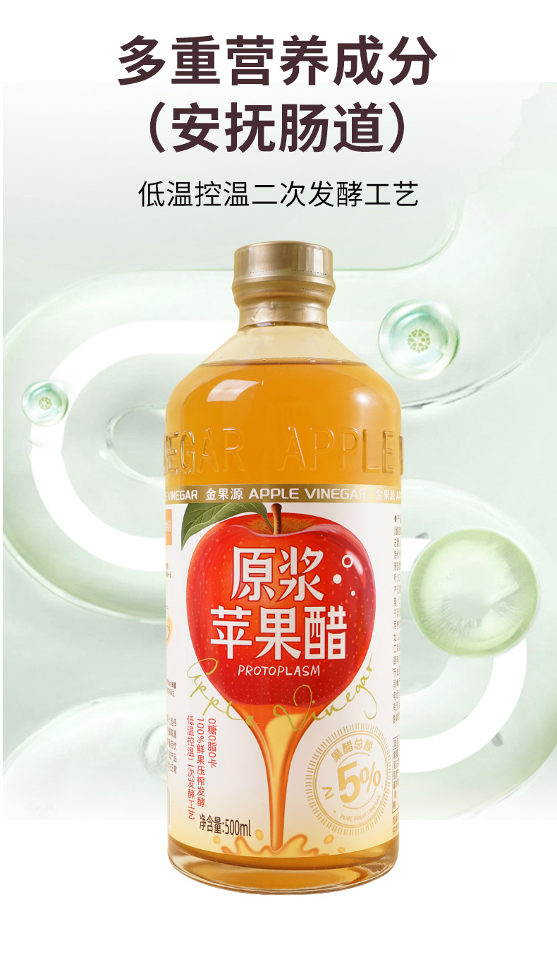 厂家金果源发酵苹果醋饮料0脂0白砂糖260ml*5瓶夏季果汁饮品批