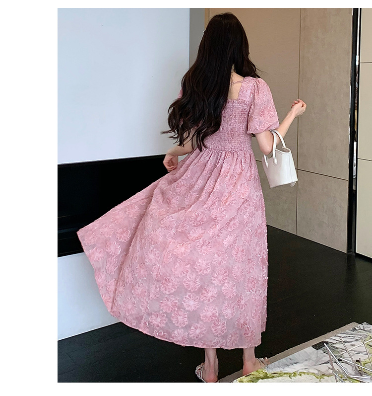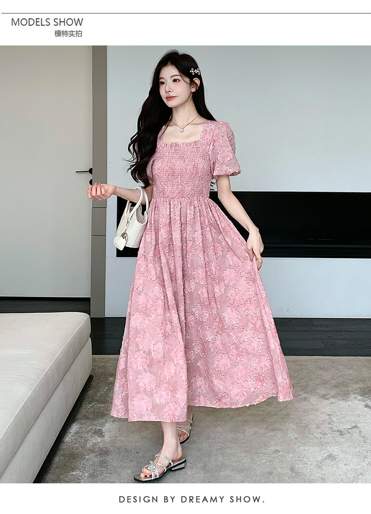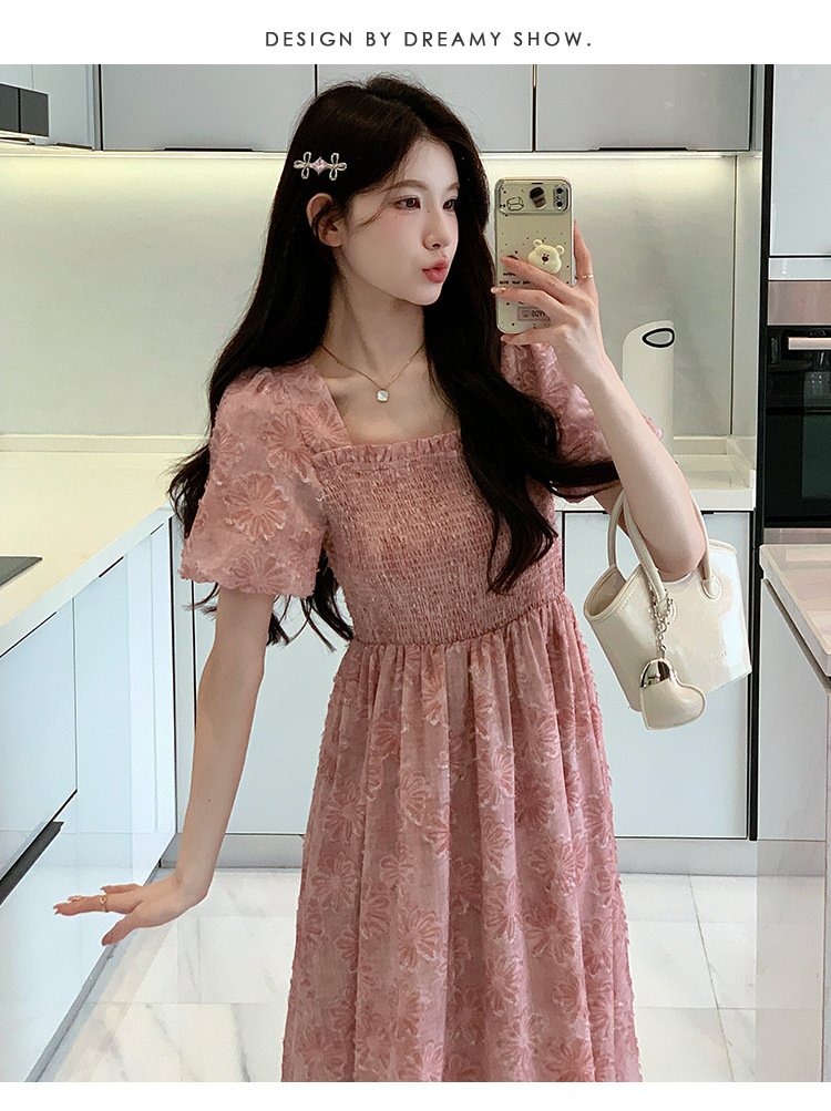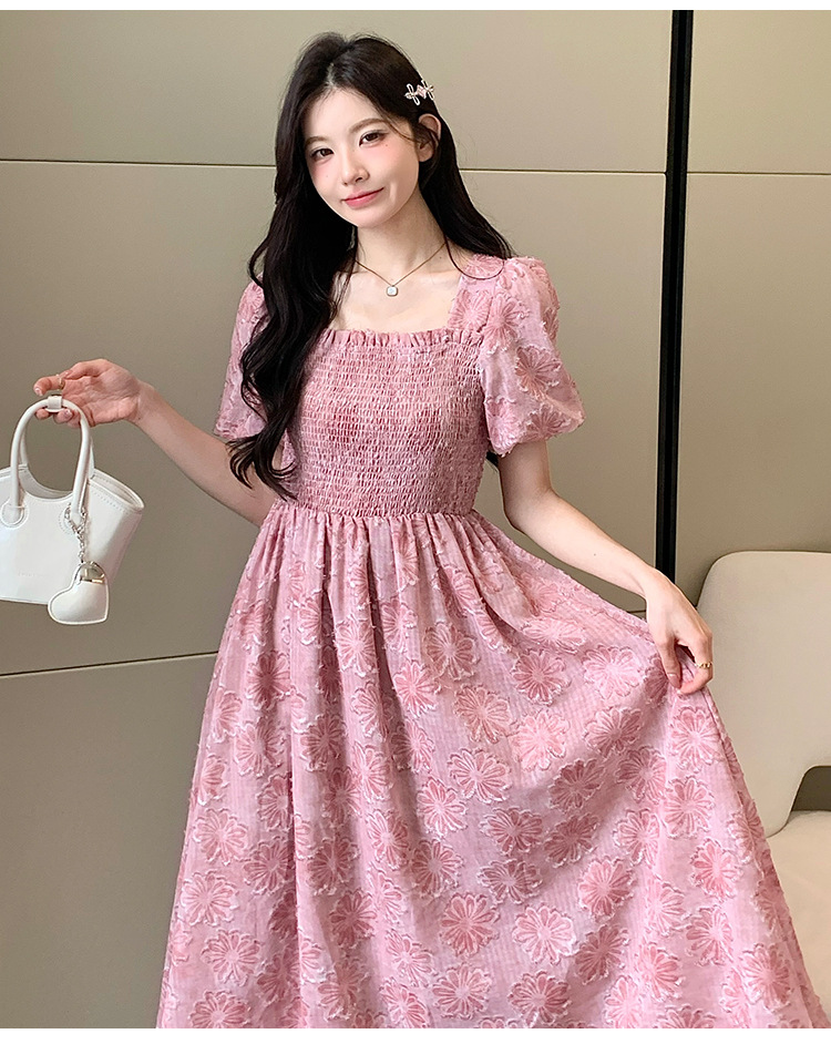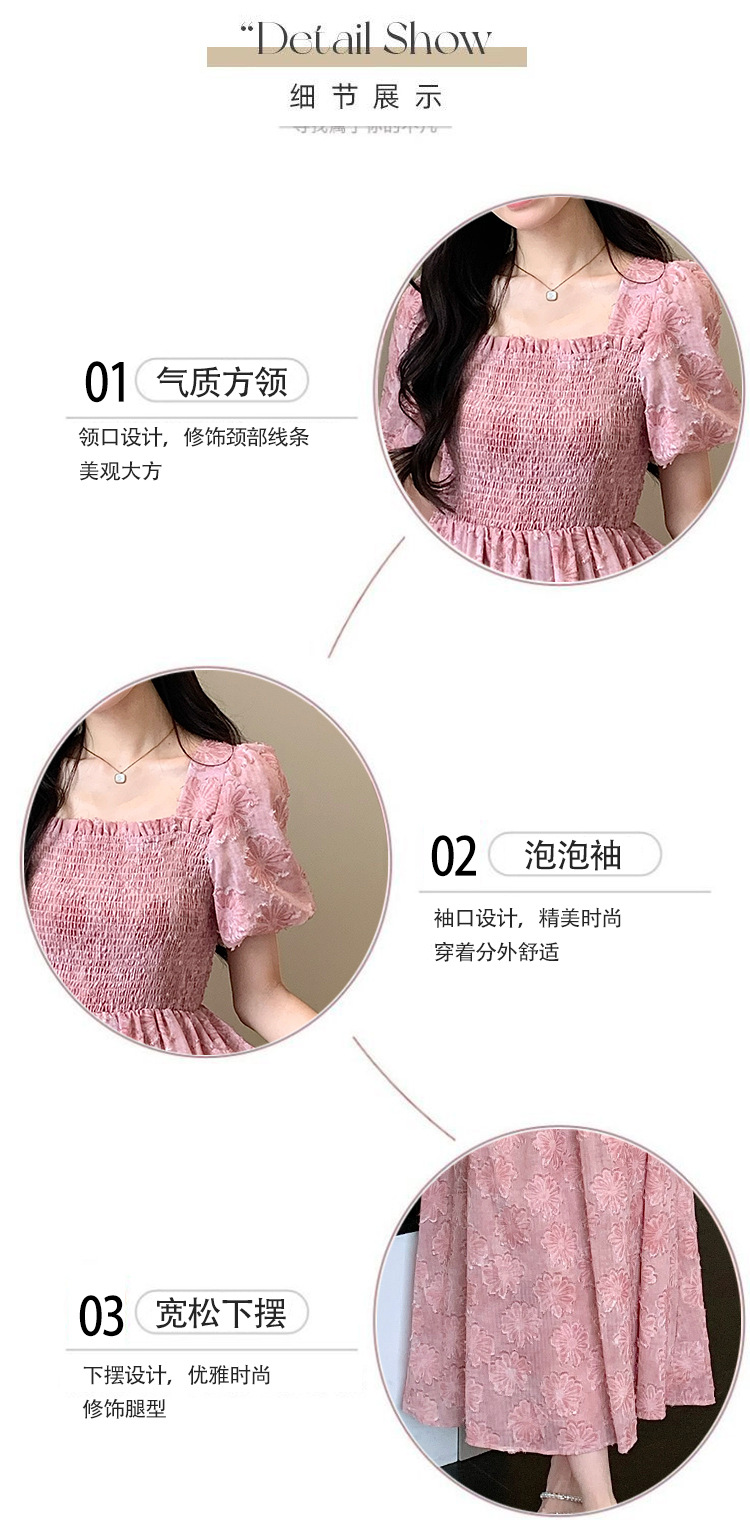 hmdd6220 フレンチジャカード半袖ドレス女性のための 2025 夏の新しい甘い年齢を減らすピンクのミドル丈スカート
