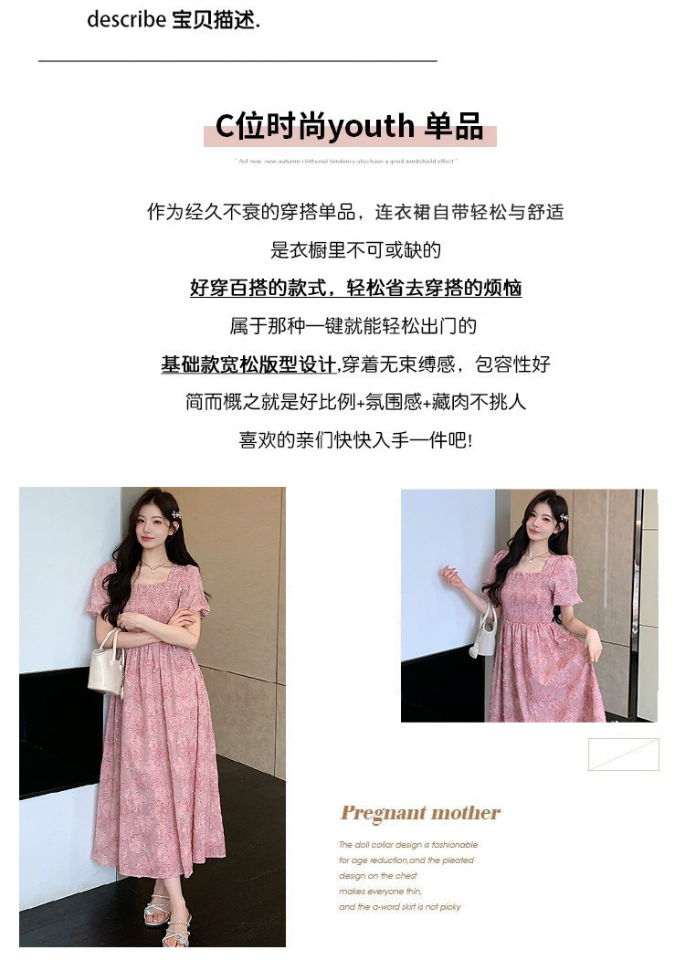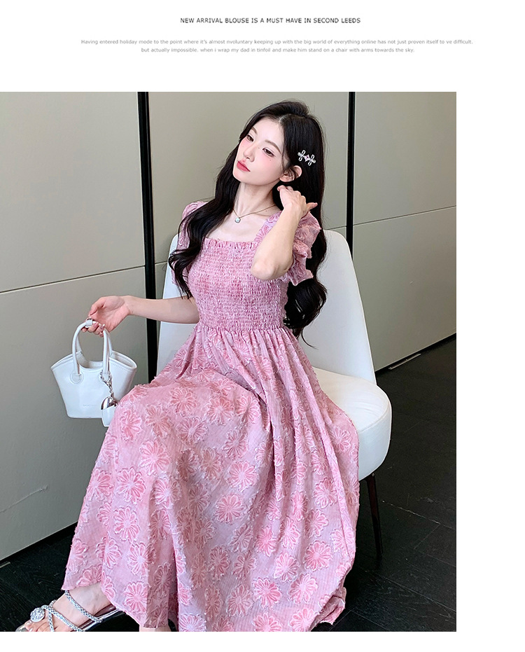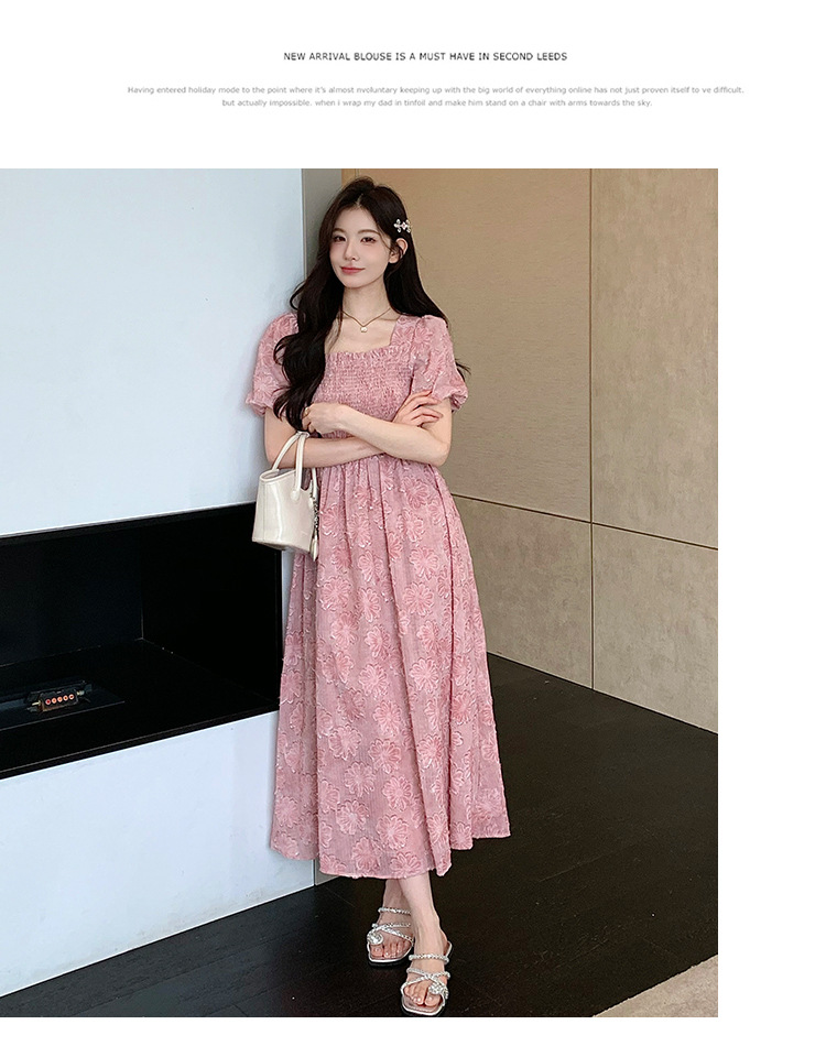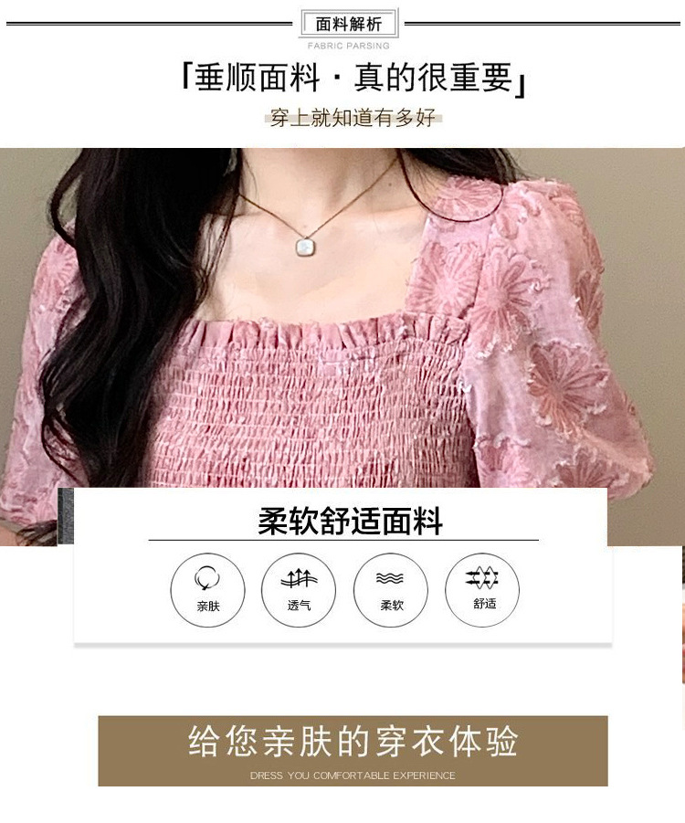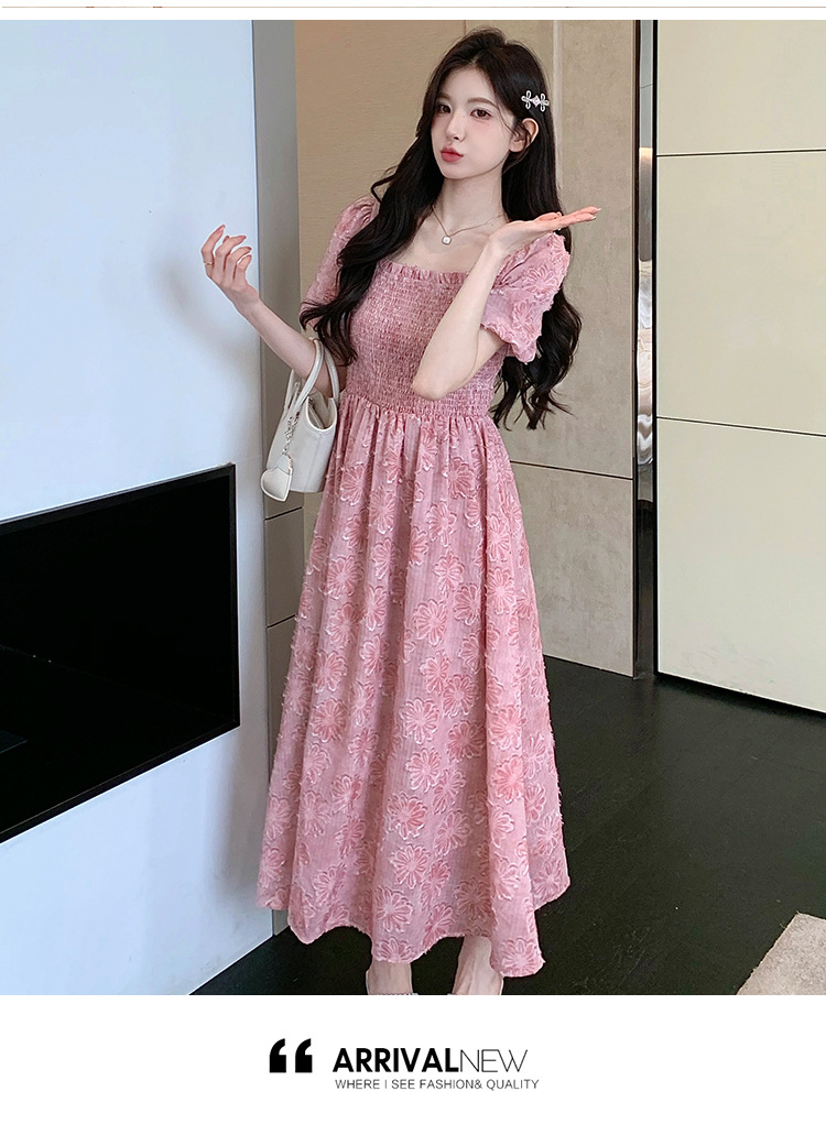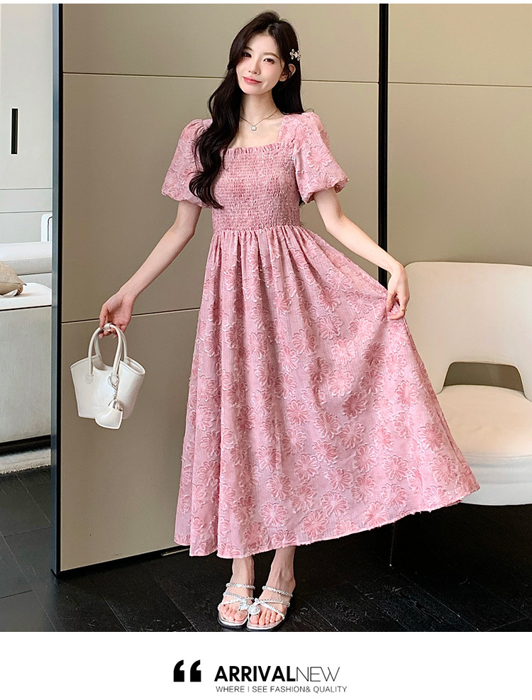 hmdd6220 フレンチジャカード半袖ドレス女性のための 2025 夏の新しい甘い年齢を減らすピンクのミドル丈スカート