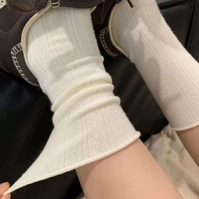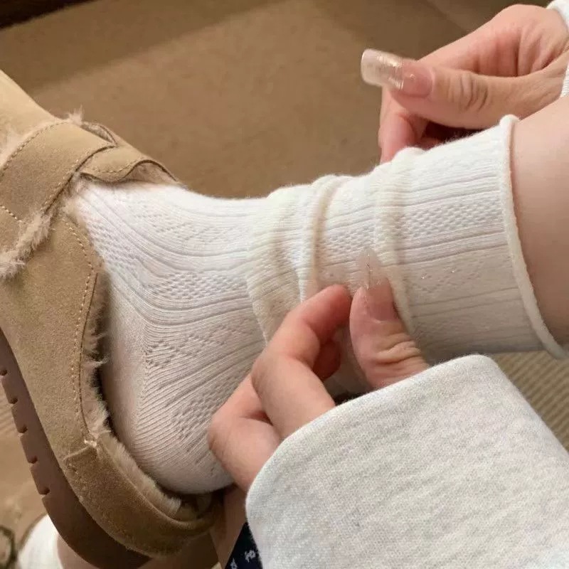 女性用春夏薄手ソックス、白綿産後ソックス、ロングチューブ新疆綿パイルソックス、ルーズ口、ボンレス、無地、多用途