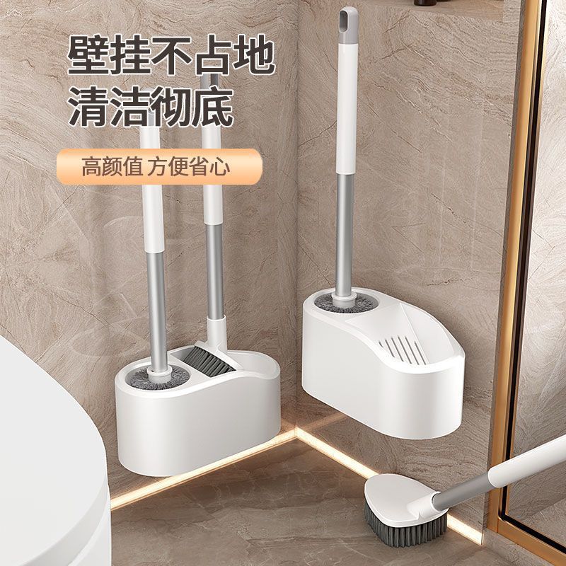新款高级无死角硅胶马桶刷子带底座挂壁式收纳套装加长卫生间跨境