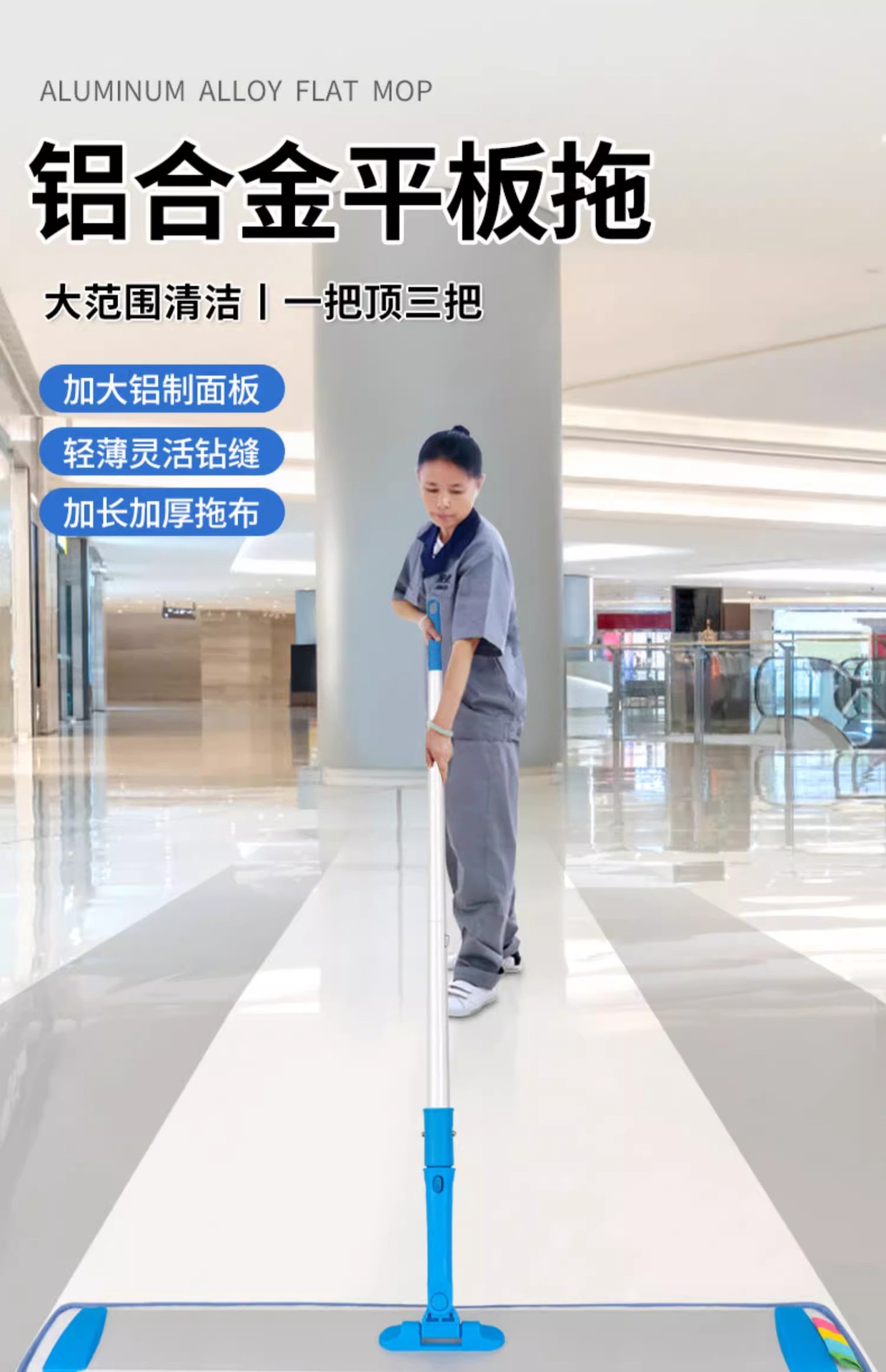 伸縮アルミニウム合金ベルクロフラットモップ家庭用病院クリーニングフロアモップベルクロタイプ乾湿両用ダストプッシュ