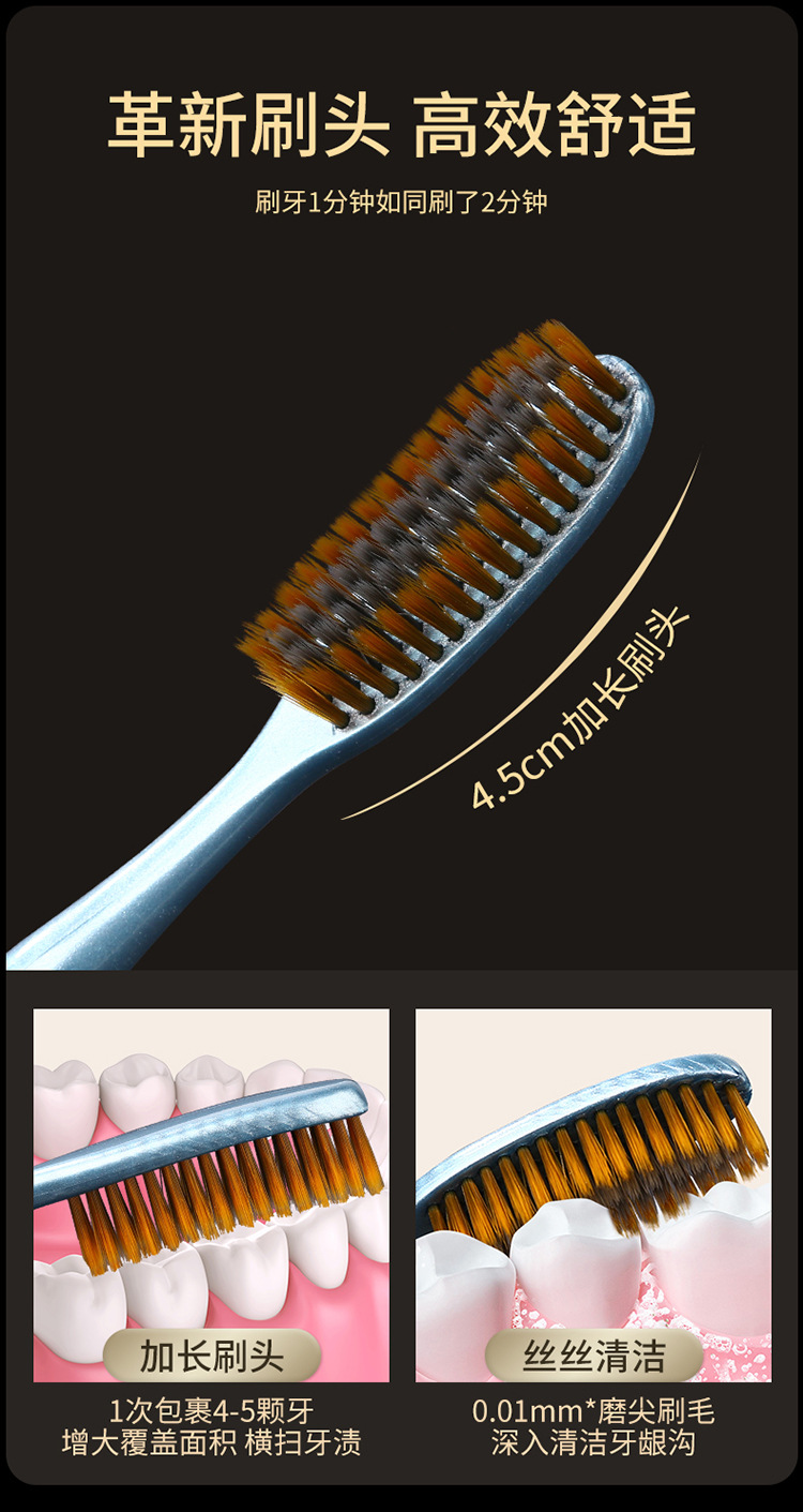 大头牙刷软毛成人家用高档鎏金系列U型长刷头家庭装洁力强耐用