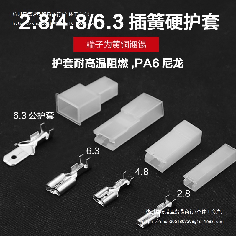 2.8/4.8/6.3 スプリングインサートハードシースプラグインナイロンオスとメスのバットコネクタ高温難燃性端子台